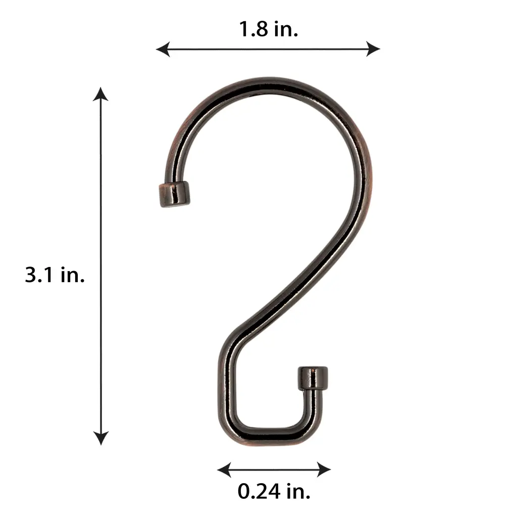 The Bath Bliss S-Hook Shower Curtain Rings are uniquely designed for easy use. Just hang the hooks on your shower rod; they are easy to install. The smooth design glides easily on the rod so that your curtain does not get stuck when you try to open and close it. They help hold shower curtains and liners up securely preventing rip and tares. These hooks can be used for more than just shower curtains. They can hang towels, pots and pans, mugs, and plants. These hooks are perfect for your home.