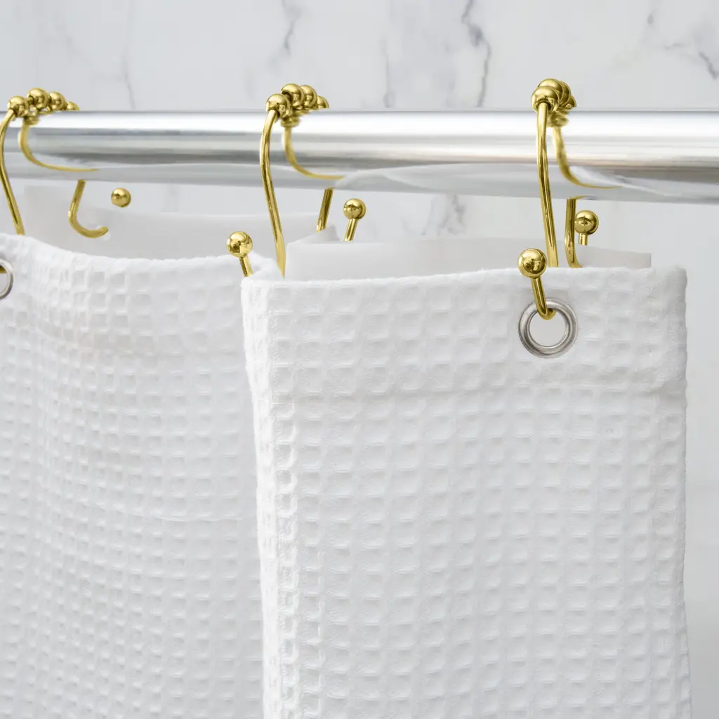 These classic rolling shower hooks are the perfect solution for hanging both your shower liner and curtain. The double hooks are designed to separate your shower curtains from your liners. The roller balls allow the curtains to open and close smoothly without getting stuck. Fitting most standard shower rods, this is a must have for all bathrooms.