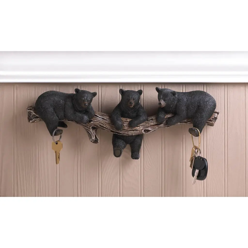 Elevate your organization game with this adorable trio of bear wall hooks! Featuring three black bears lounging on a log, each extending a foot as a practical hook, it adds a touch of whimsy to any space. Perfect for country-themed decor, utilize it in the bathroom, kitchen, mudroom, closet, or bedroom for stylish and functional storage solutions. Product Features: Contemporary style wall plaque Charming trio of lounging black bears Each bear foot serves as a hook Ideal for bathroom or kitchen Care instructions: dust lightly or wipe with a damp cloth For indoor use only Dimensions: 7"H x 18.25"W x 2.5"D Material(s): polyresin