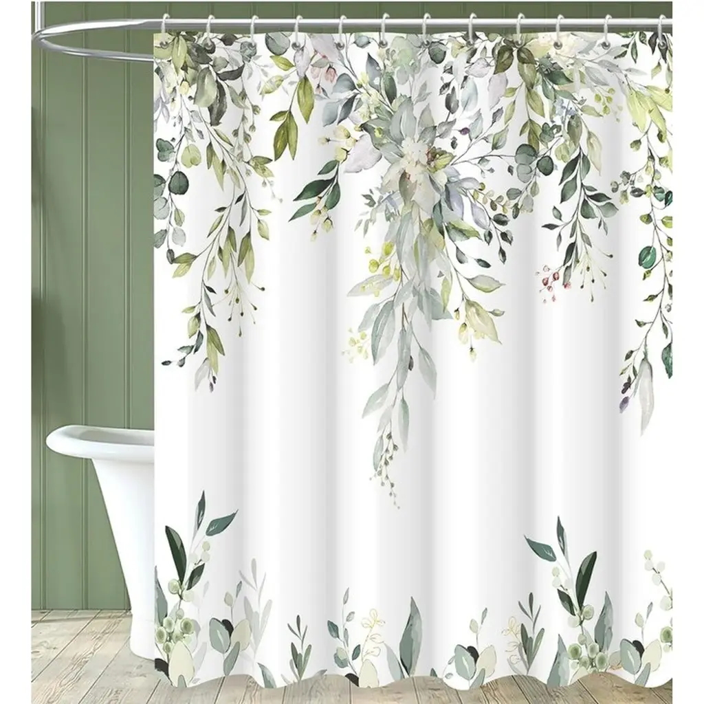 Bohemian Shower Curtain, Mid-Century Modern, For Bathroom Decorative Tub With 12 Hooks 72x72 - Green White