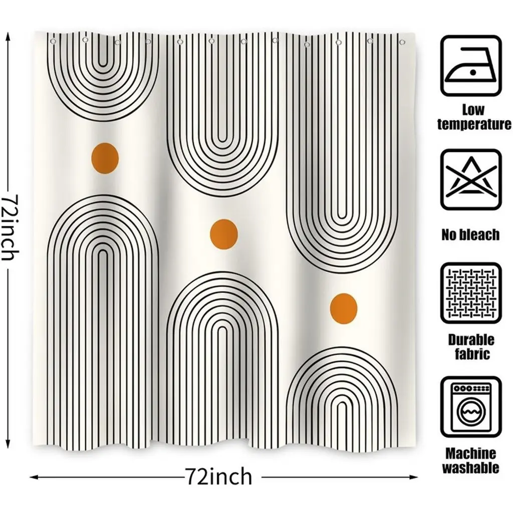 HIGH QUALITY MATERIAL: Mid Century Shower Curtain is made of high quality polyester material, which is easy to clean, machine washable, waterproof, durable, odorless, wrinkle-resistant and smooth.PRIVACY PROTECTION: The mid century shower curtain is thick enough to protect your privacy. The bathtub shower curtain allows you to enjoy your shower without outside interference, allowing you to relax both physically and mentally.WATERPROOF: Mid-century shower curtains have excellent waterproofing properties that facilitate the separation of wet and dry. This also means that the shower curtain has a quick-drying feature, allowing you to spend little time tending to it.EXCELLENT DECORATION: With our high-definition printing technology, clear patterns and unique prints, the mid-century shower curtain makes your bathroom look eye-catching. It is suitable for any bathing place, whether at home, RV, apartment or hotel.EASY TO USE AND CARE: Our mid-century shower curtain has rust-resistant metal grommets at the top and comes with 12 plastic hooks that allow you to quickly hang the curtain on a rod using C-hooks. You can machine or hand wash it to keep it clean.