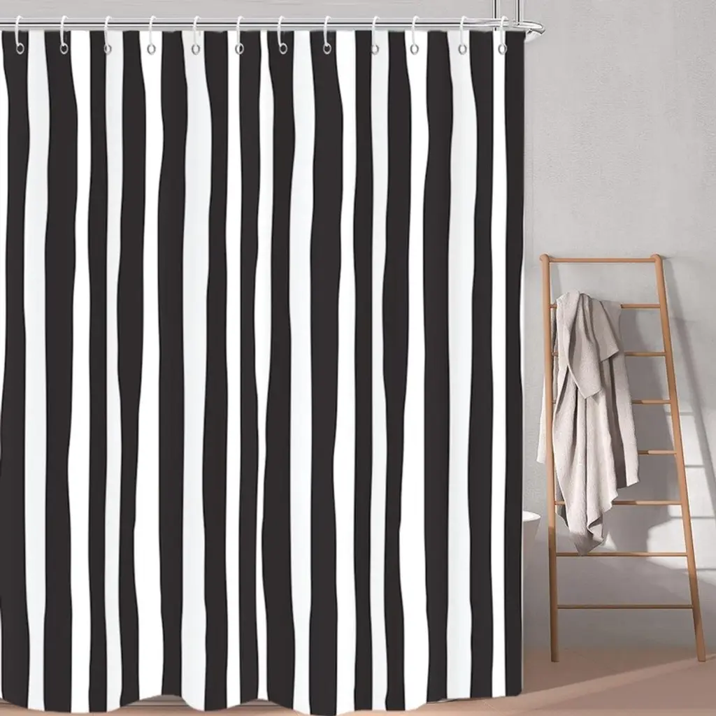 Bohemian Shower Curtain, Mid-Century Modern, For Bathroom Decorative Tub With Bathtub With Hooks 60x72 - Black And White