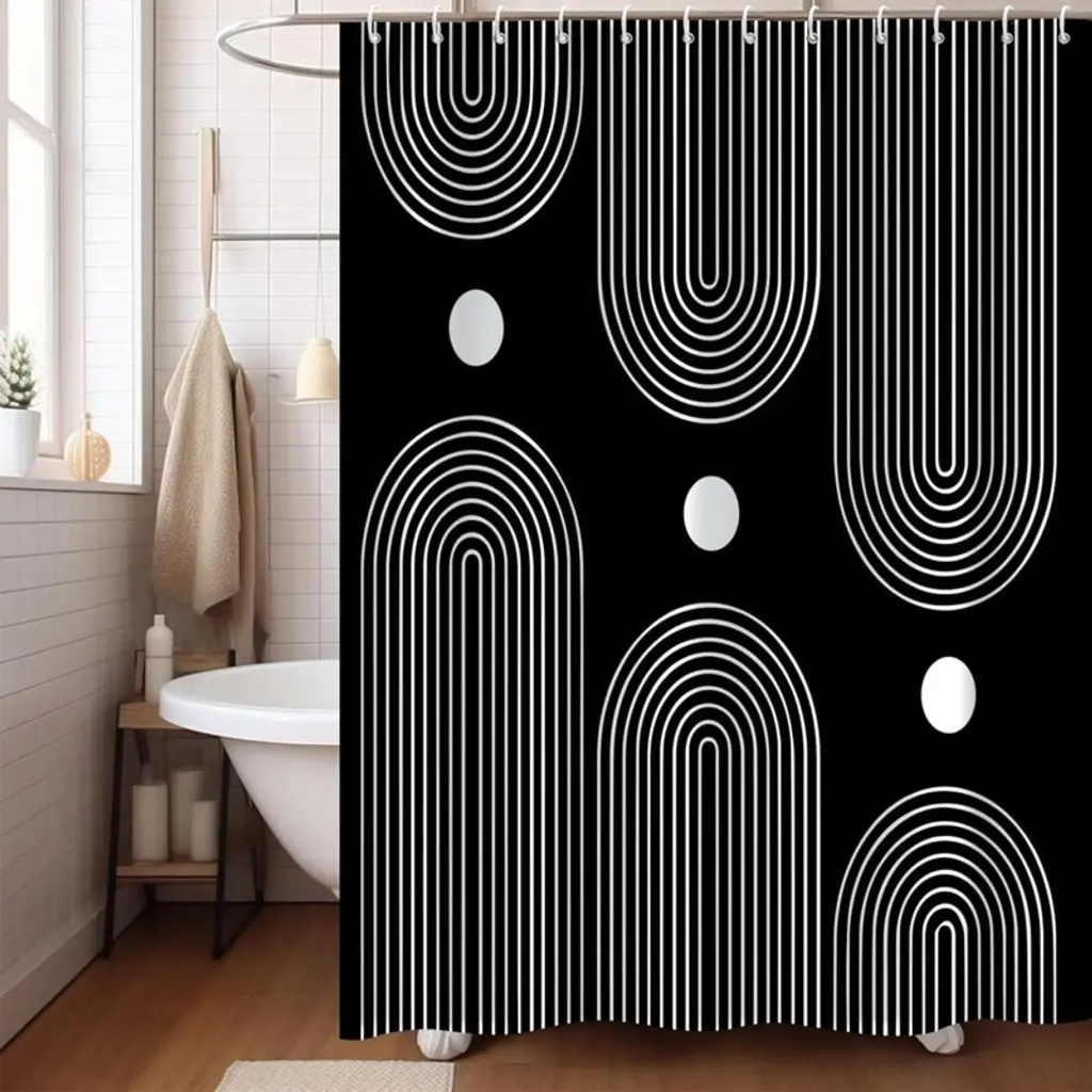 Bohemian Shower Curtain, Mid-Century Modern, For Bathroom Decorative Tub With Bathtub With Hooks 72wx78h - Black And White Boho