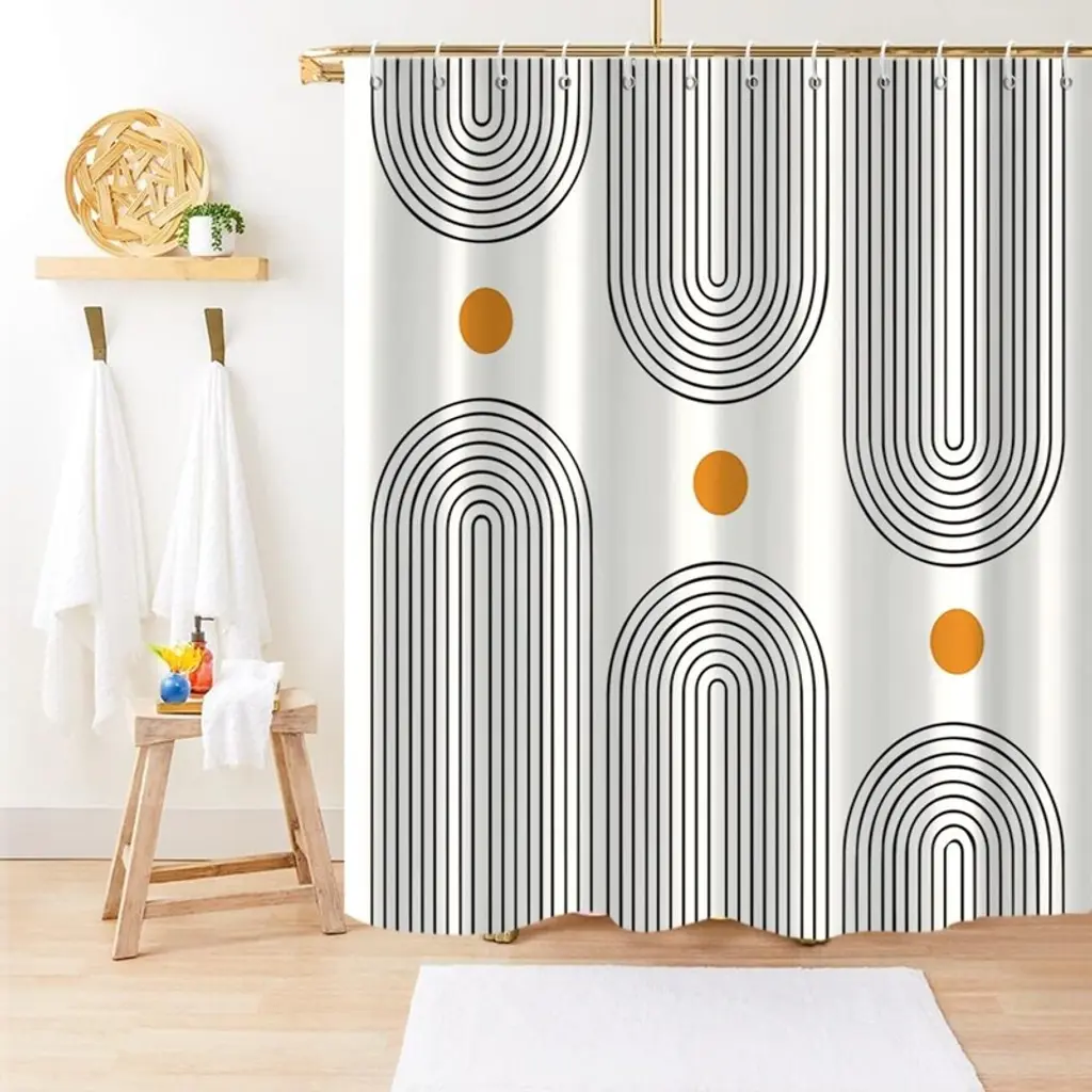 Bohemian Shower Curtain, Mid-Century Modern, For Bathroom Decorative Tub With Bathtub With Hooks 72wx78h - Vory Beige