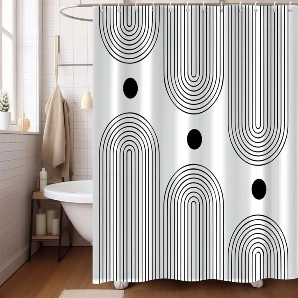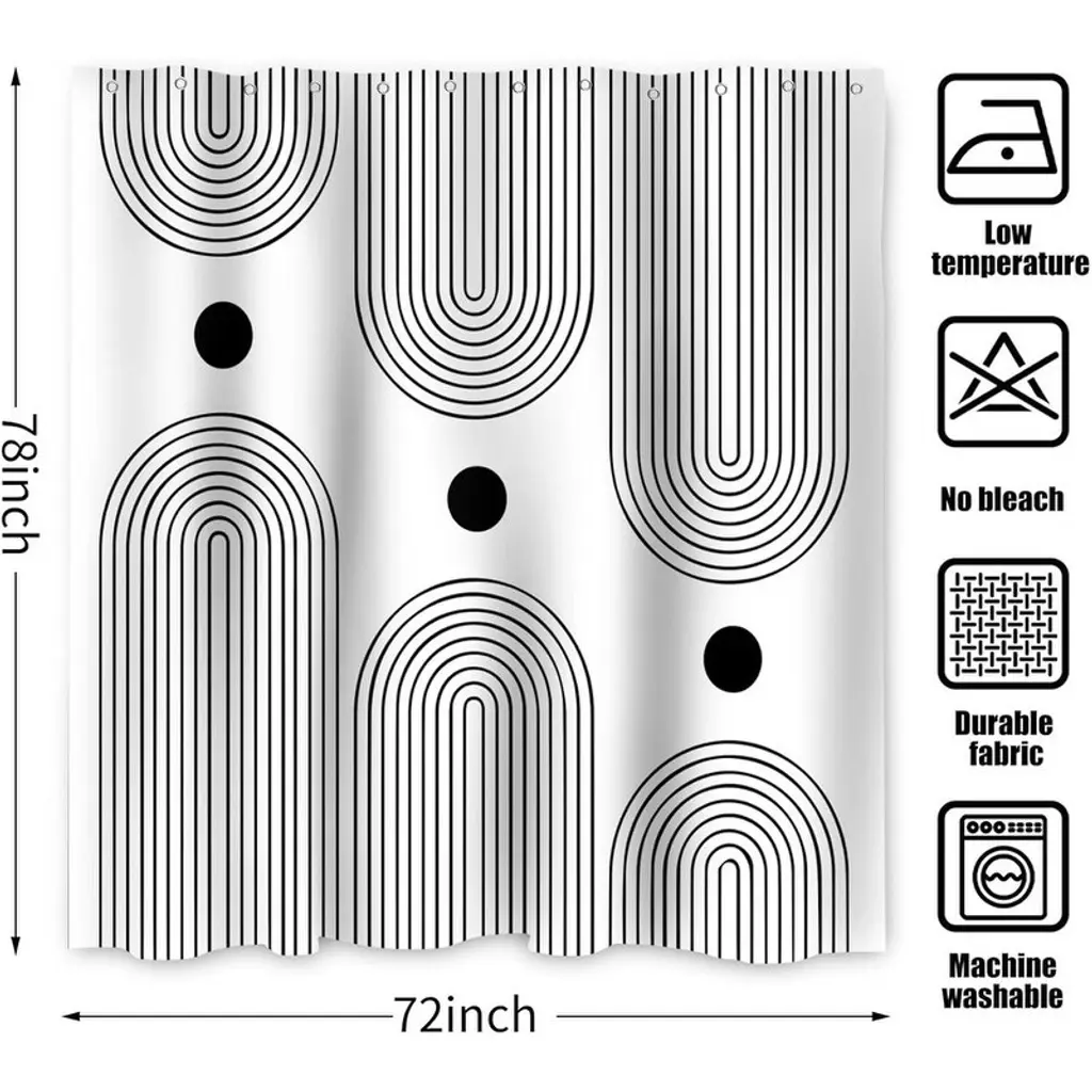 Bohemian Shower Curtain, Mid-Century Modern, For Bathroom Decorative Tub With Bathtub With Hooks 72wx78h - White And Black Boho