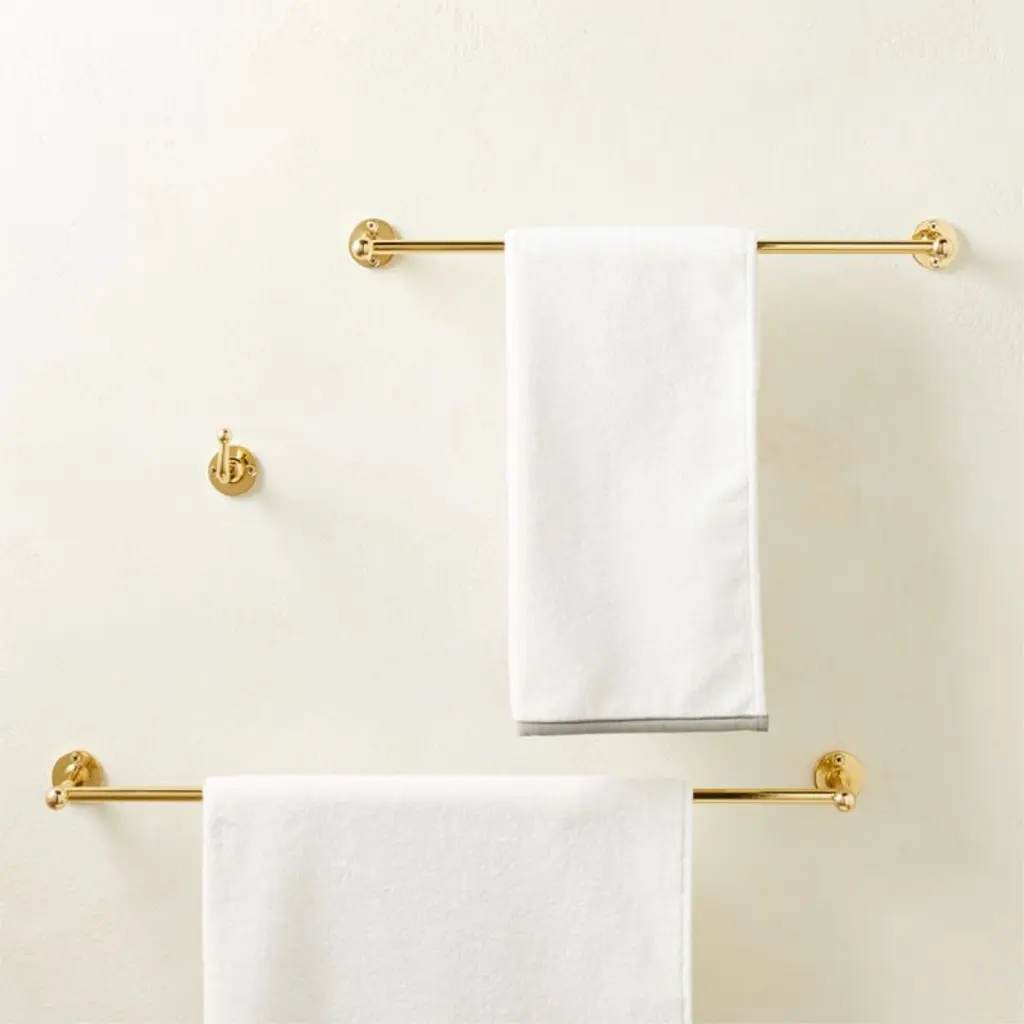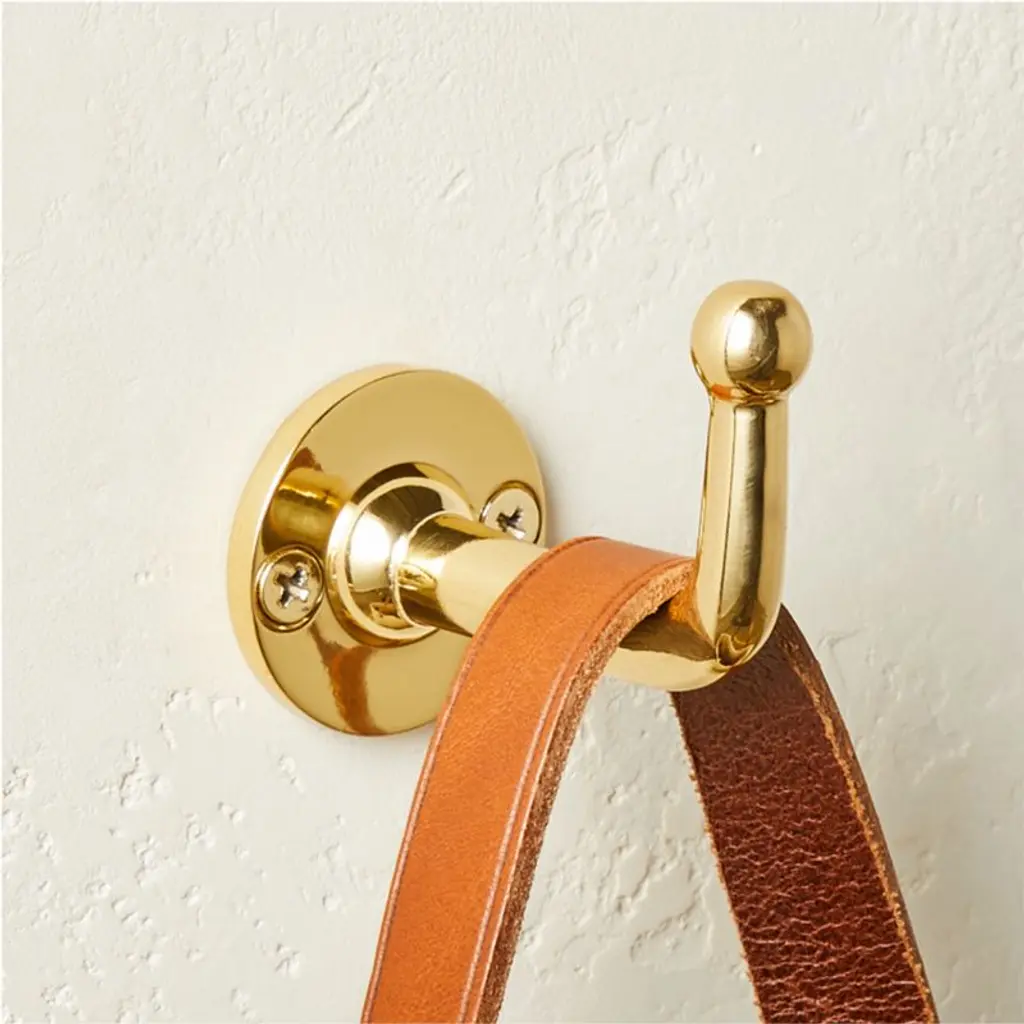 Designed by Chicago-based Sasha Adler, solid brass hook with boule details nods to classic French design. Sleek finish gives it a contemporary edge. Collection also includes matching toilet paper holder and towel bars. CB2 exclusive.