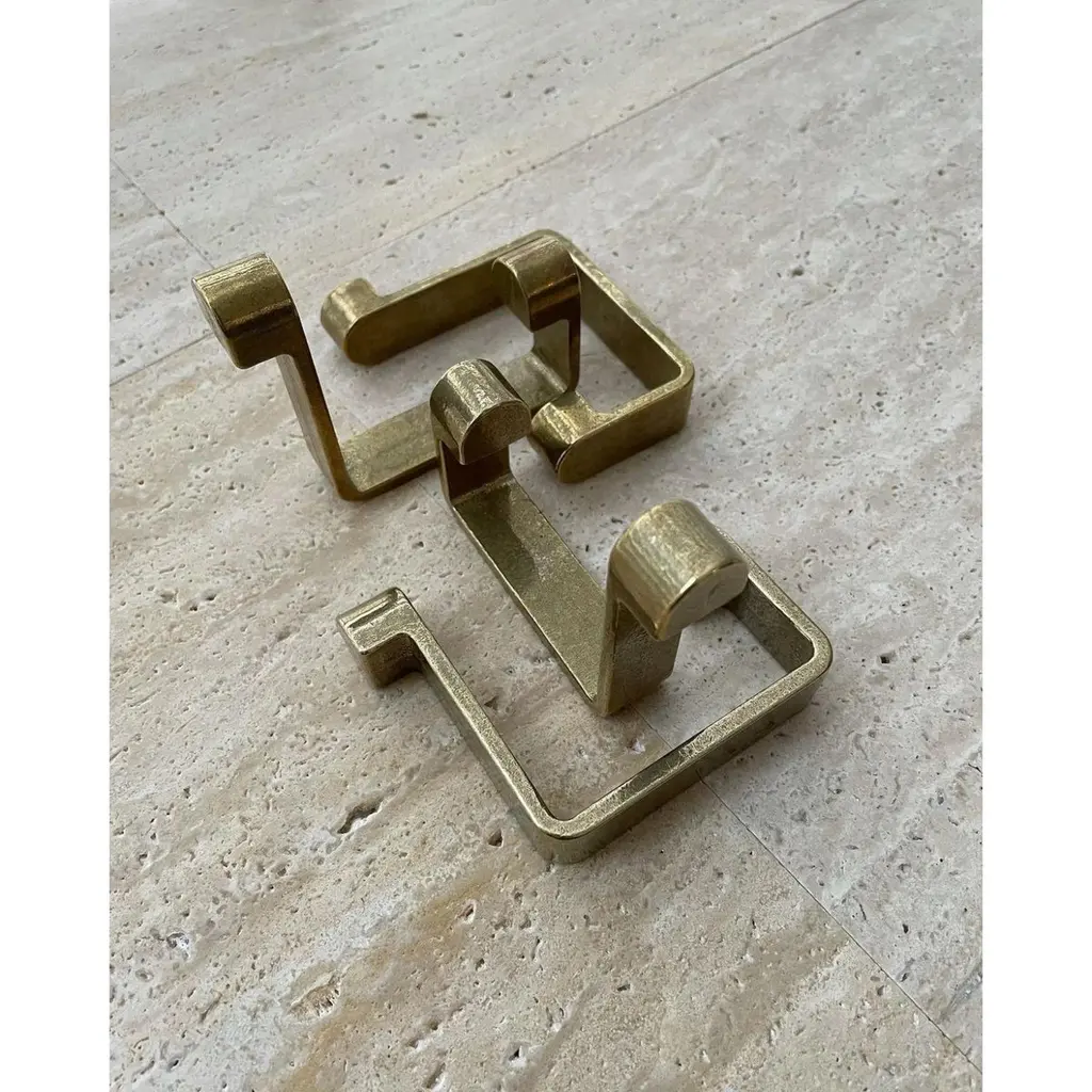 Brass Ribbon Hook by Henry WilsonDimensions: W 2 x D 8 x H 12 cmMaterials: BrassThe Ribbon Hook is sand cast in solid brass. Ribbon hook has two protruding blocks to allow you to hang multiple pieces on the one fixture.Our Hooks are manufactured in small batches so slight variations will occur from piece to piece. Production marks may include slight pour ripples or surface pitting. They will arrive with a bright finish but will oxidise and darken over time to reveal a distinctive patina. Simply use a metal polish to restore a like-new finish. Hooks come with matching screwsHenry Wilson's work combines a rational, democratic utility with an element of sculptural expression. There is a clear form and function in our products, but it’s important they also have feeling. We are interested in the awkward beauty that comes from something made by hand. We like to explore how imperfection can be introduced into an Industrial process, to make something at scale that retains a sense of individual charm.