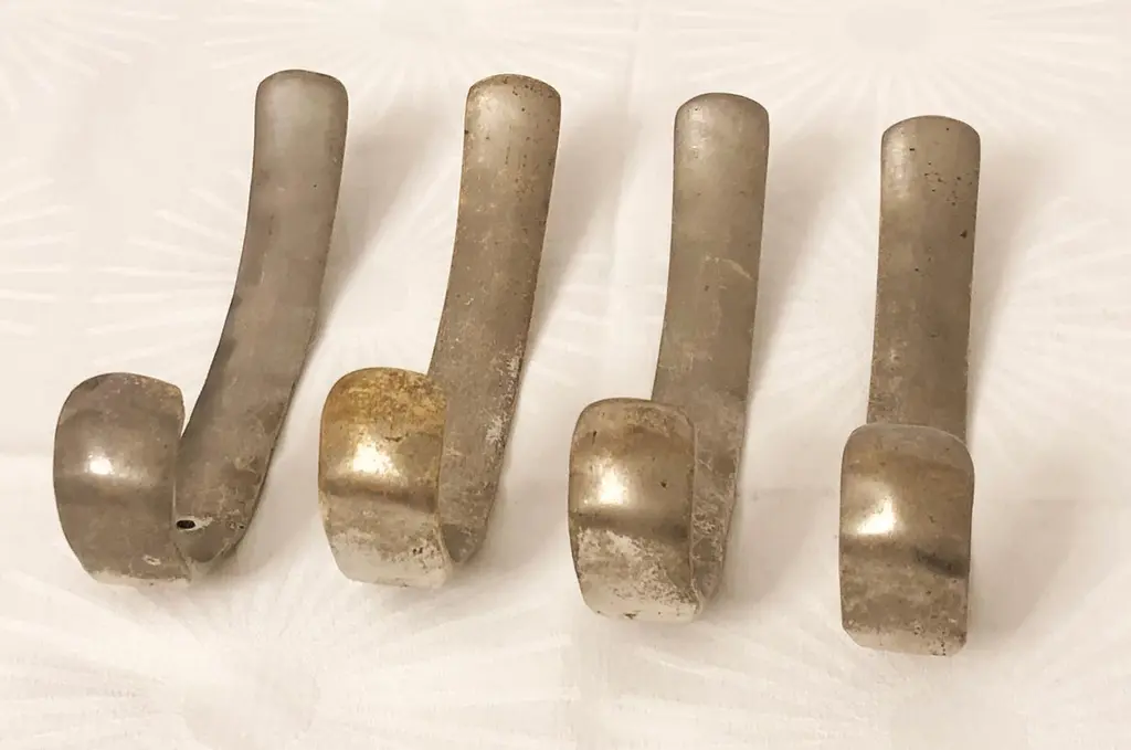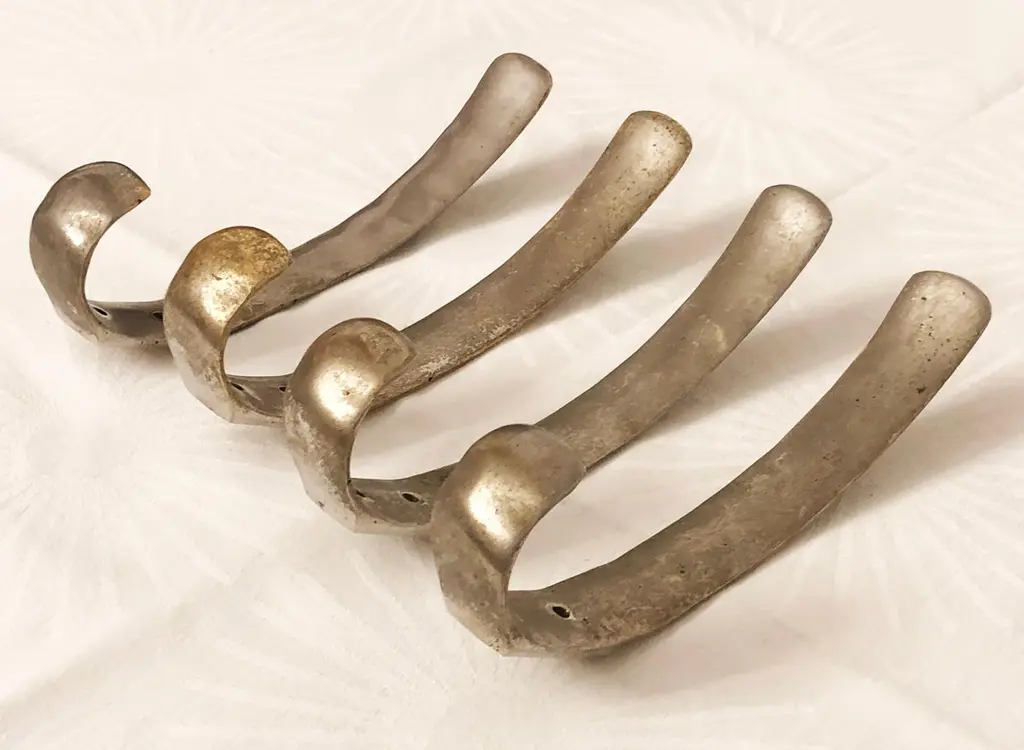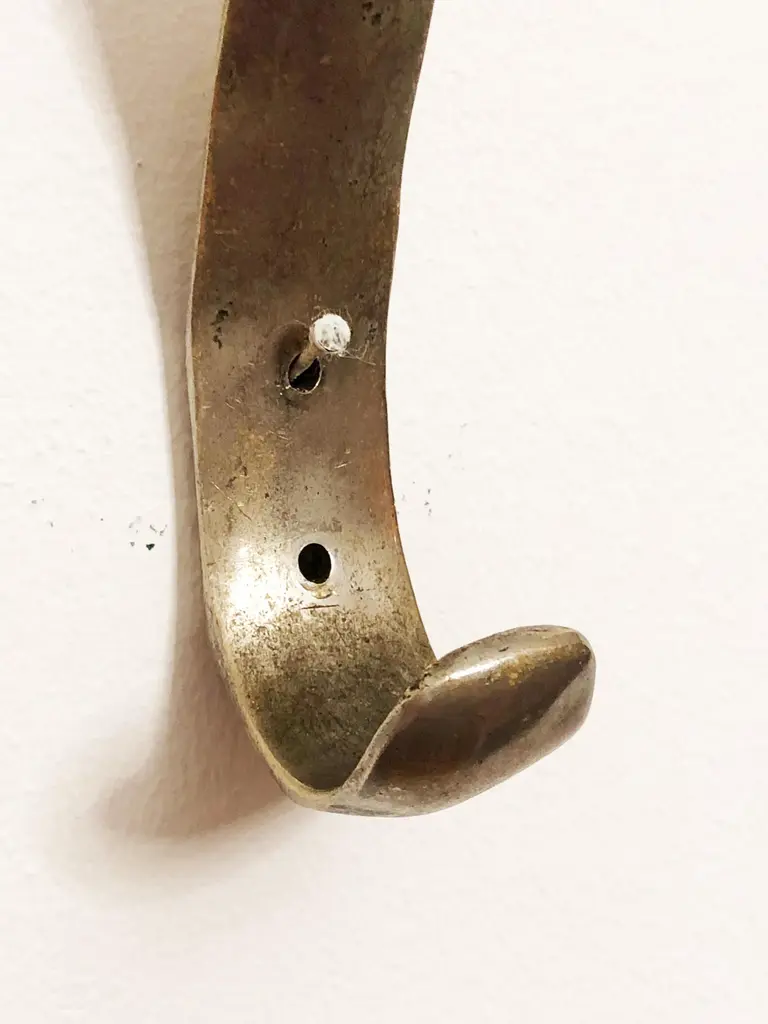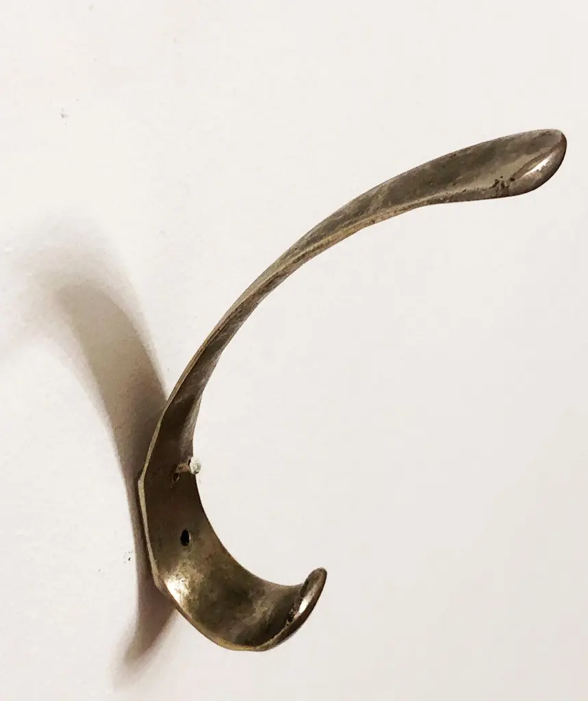 Cast brass nickel plated wall hooks by Franz Hagenauer Wien made in the early 1950s.Up to four available, price/piece.