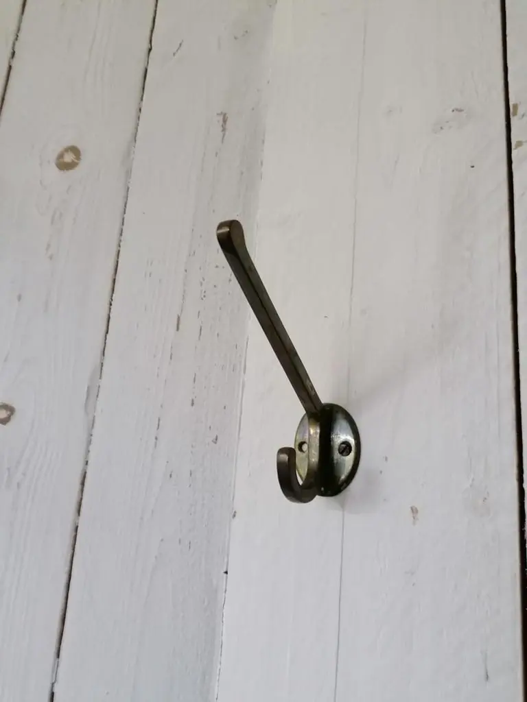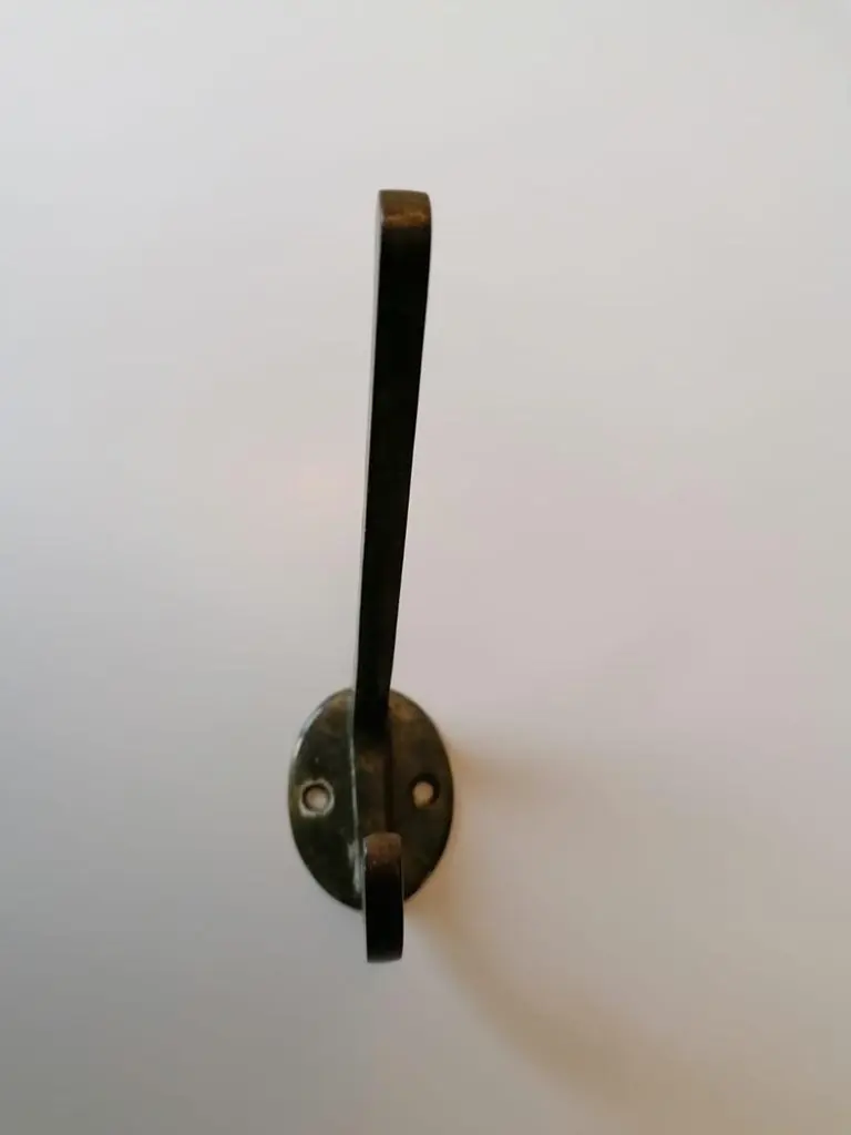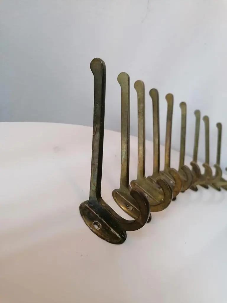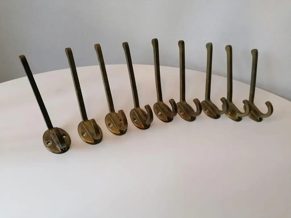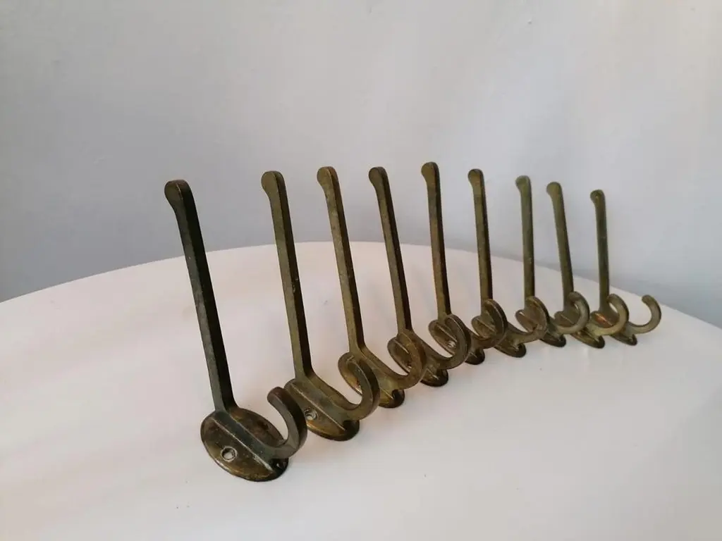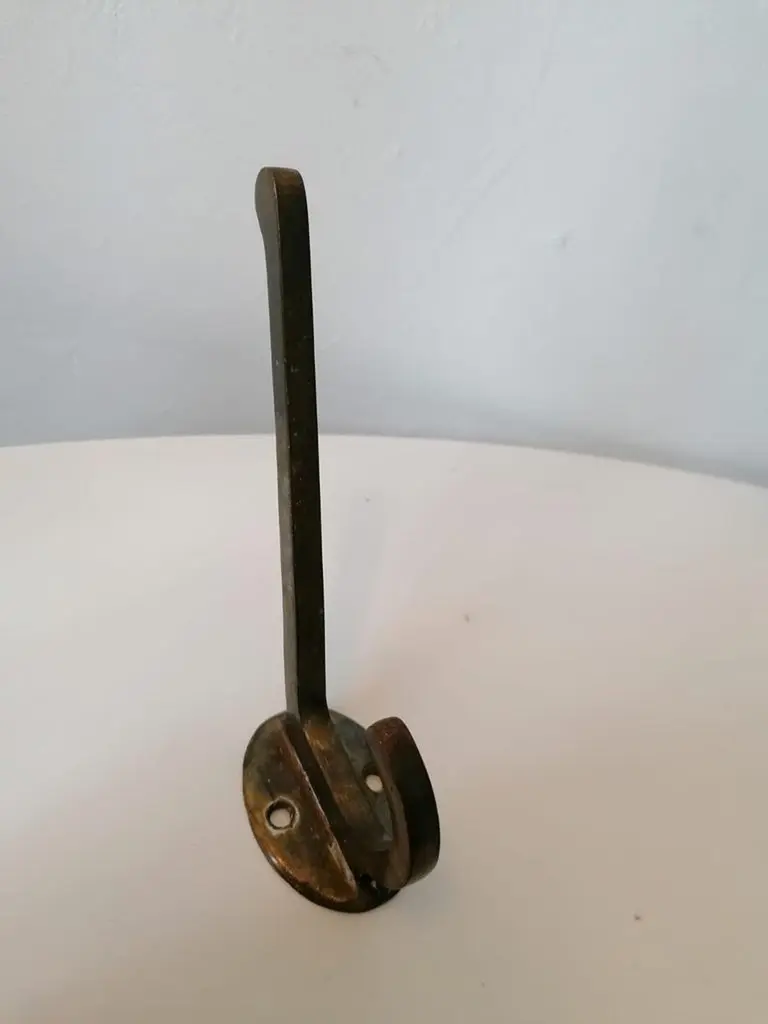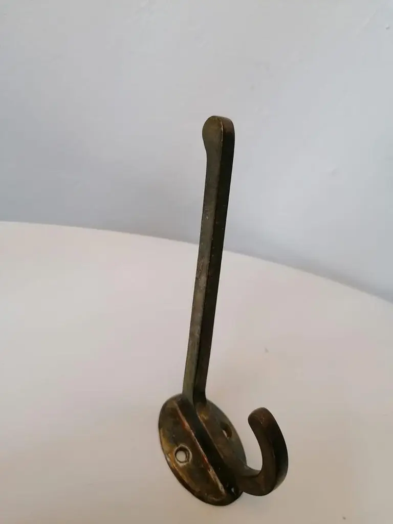 Brass coat, hat hooks in original condition made in Austria in the 1930s.Can be polished to high glossy finish on request.Price per hook, up to 9 available.