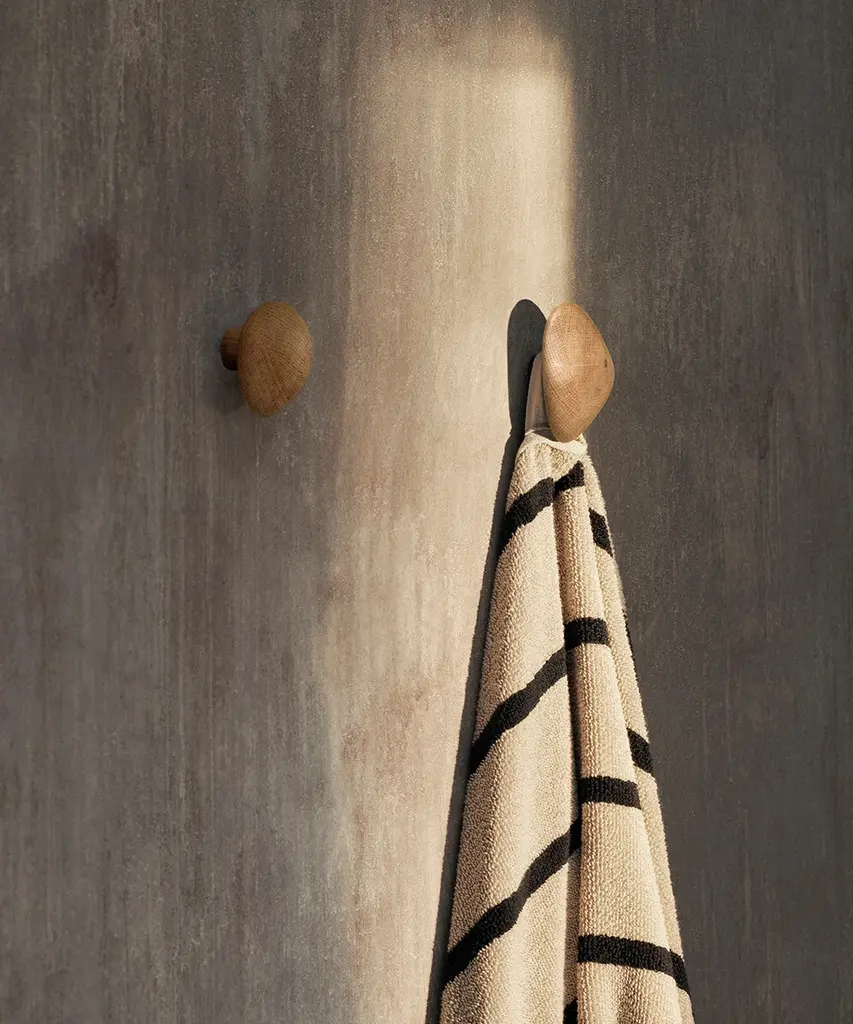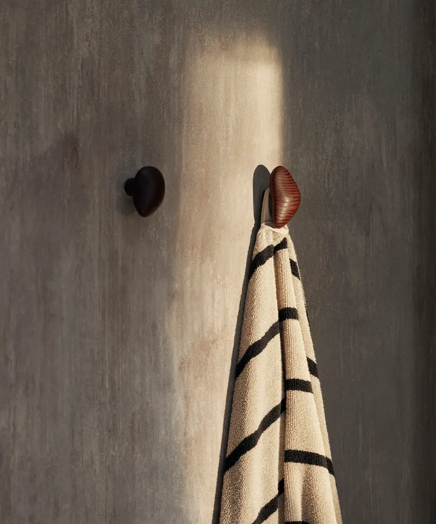 Characterised by their soft curves and sculpted details, the Cairn Hooks will add an artistic and functional touch to your wall. Inspired by cairns, man-made stacks of stones that are often raised for memorial purposes, the organic wooden hooks have been carved from solid, FSC™ certified oak wood. Featuring delicate, rounded edges, the pieces have been treated with a carbonised finish for a distinct look. The Cairn Hooks come as a set of 2, allowing you to effortlessly make room for coats in the hallway, towels in the bathroom or textiles in the kitchen. Designed and produced by the Copenhagen-based studio Ferm Living.