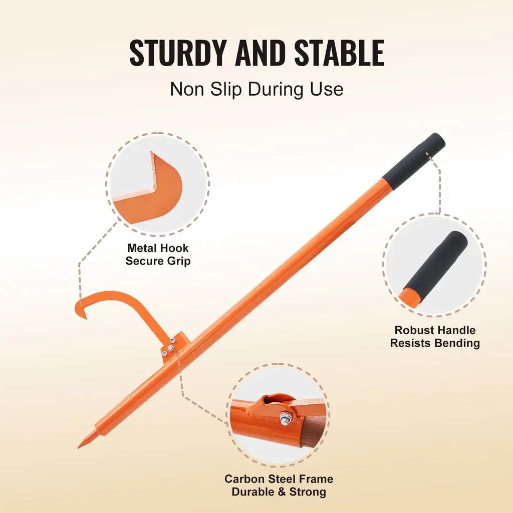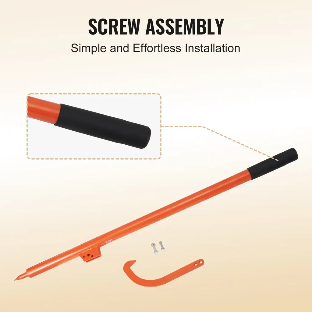 Log Lifter for Easy Handling: Our log jack uses leverage to effortlessly stack and transport wood, making it an essential tool for moving logs in forests, yards, and sawmills. Compatible with Various Log Sizes: The cant hook comes with adjustable iron hook that accommodates logs up to φ32" / φ15" / φ19" / φ25" / φ18", allowing for easy handling of different sizes. Ergonomic Handle: With handles measuring 46.5" / 48" / 59", covered in rubber grips, this log roller provides a comfortable and secure hold while lifting and dragging logs, reducing strain and preventing fatigue. Durable Material: Constructed from heavy-duty carbon steel with robust welds, this timberjack is designed for durability. The orange powder-coated surface protects against rust and corrosion, extending its lifespan. Easy Assembly and Use: Assembly this cant hook is straightforward with screws and nuts, requiring no additional power tools, making it simple for one person to set up. 46.5" handle, φ32" / φ18" Package Content 1 x Manual 1 x Handle 1 x Hook 1 x M10 Screw + Nut 1 x Rubber Grip (only for 46.5" handle, φ32" option) 46.5"handle, φ15" Package Content 1 x User Manual 1 x Pipe 1 1 x Pipe 2 1 x Hook 1 x Flat Iron 2 x T-Shaped Legs 7 x M10 Screws and Nuts 48" handle, φ15" Package Content 1 x User Manual 1 x Pipe 1 1 x Pipe 2 1 x Hook 1 x T-Shaped Leg 3 x M10 Screws and Nuts 1 x Pointed Nail and Nut 46.5'' handle, φ19" / 59" handle, φ32" Package Content 1x User Manual 1 x Handle 1 x Hook 1 x M10 Screw + Nut 2 x M8 Screws + Nuts 1 x Rubber Grip 46.5" handle, φ25" Package Content 1 x User Manual 1 x Claw 1 x Bar 1 x Handle 1 x Support Rod 1 x T-Shaped Leg 5 x Screws 5 x Nuts 46.5'' handle, φ15" Package Content 1 x User Manual 1 x Handle 1 x Hook 1 x T-Shaped Leg 3 x M10 Screws and Nuts