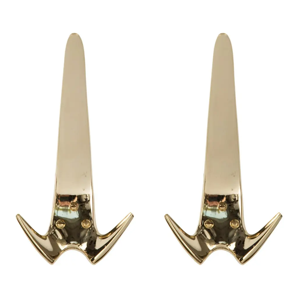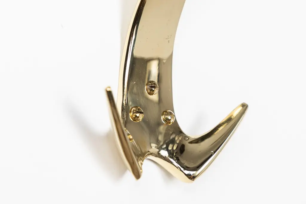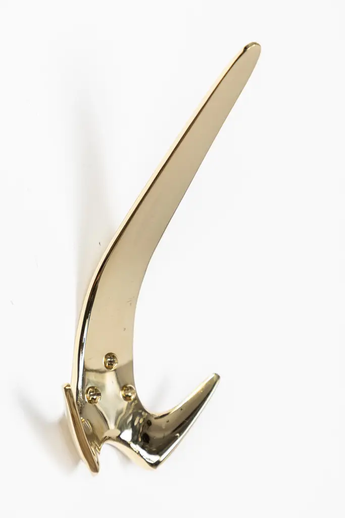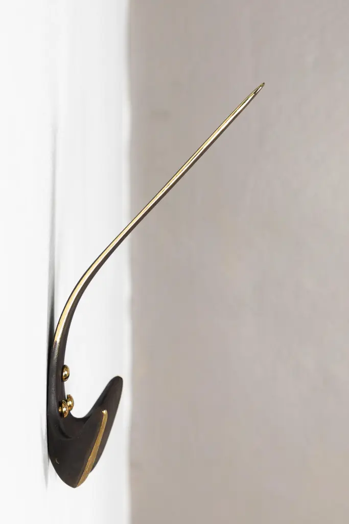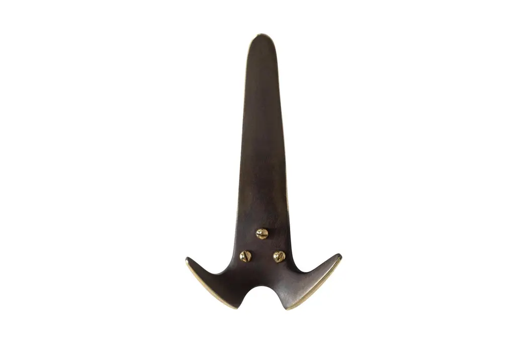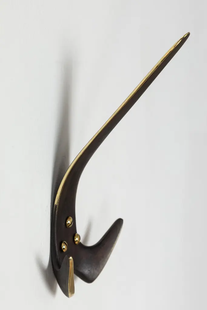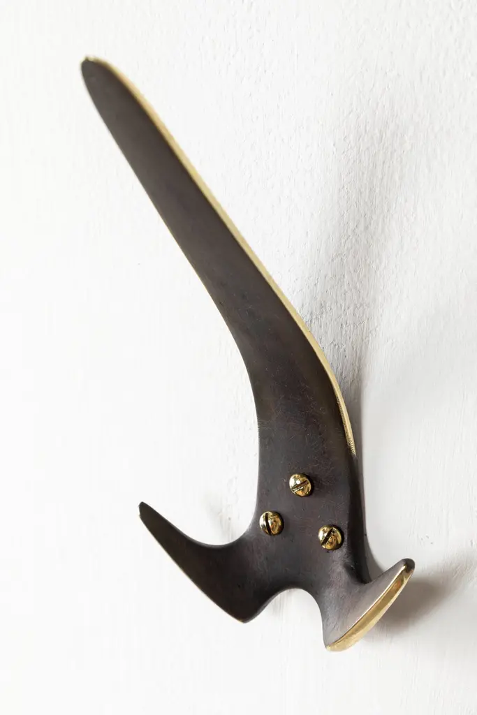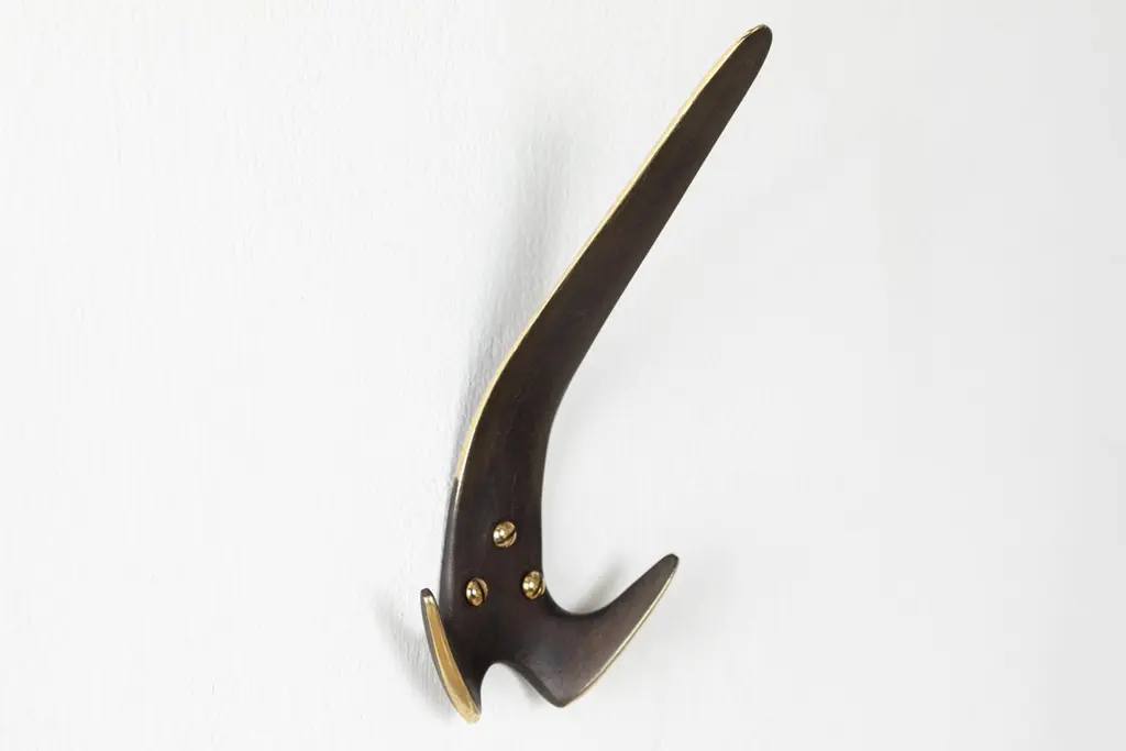 Carl Auböck brass #4056 patinated brass hook. Designed in the 1950s, this versatile and Minimalist Viennese hook is executed in patinated and polished brass by Werkstätte Carl Auböck, Austria. Price is per item. Also available in all polished and all nickel-plated versions in separate listings. One in stock ready to ship. Available in unlimited quantities. Please note that in-stock availability is subject to change at any time. Allow additional 3-4 weeks for items not in stock. Can take up to 8 weeks.Produced by Carl Auböck IV in the original Auböck workshop in the 7th district of Vienna using the same exacting standards, high-quality materials, original molds and techniques of his legendary namesake. Auböck's design career was long and varied, reaching its pinnacle of prestige at the Triennale di Milano in 1954, where he received four gold medals in recognition of his iconic work.Please note that only one representative example of each item is shown in the images. Finish varies from item to item due to the handmade nature of their fabrication and due to the unique chemical patination process, which is meant to simulate 80-100 years of exposure of brass to sunlight.Made to order. All sales are final.