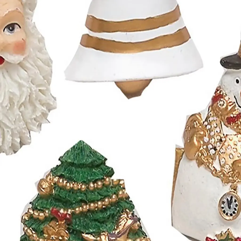 "Christmas Tyme" resin shower curtain hooks set of 12 Give your bathroom Holiday Spirit simply and subtly with our "Christmas Tyme" Shower Curtain Hooks (12 included per set). The face of each assorted "Christmas Tyme" hook is a beautiful hand-painted resin while the hook itself is a highly durable steel. In other words your shall enjoy these festive holiday hooks for seasons to come. "Christmas Tyme" Resin Shower Curtain Hooks - Multi 1.5x1.5"