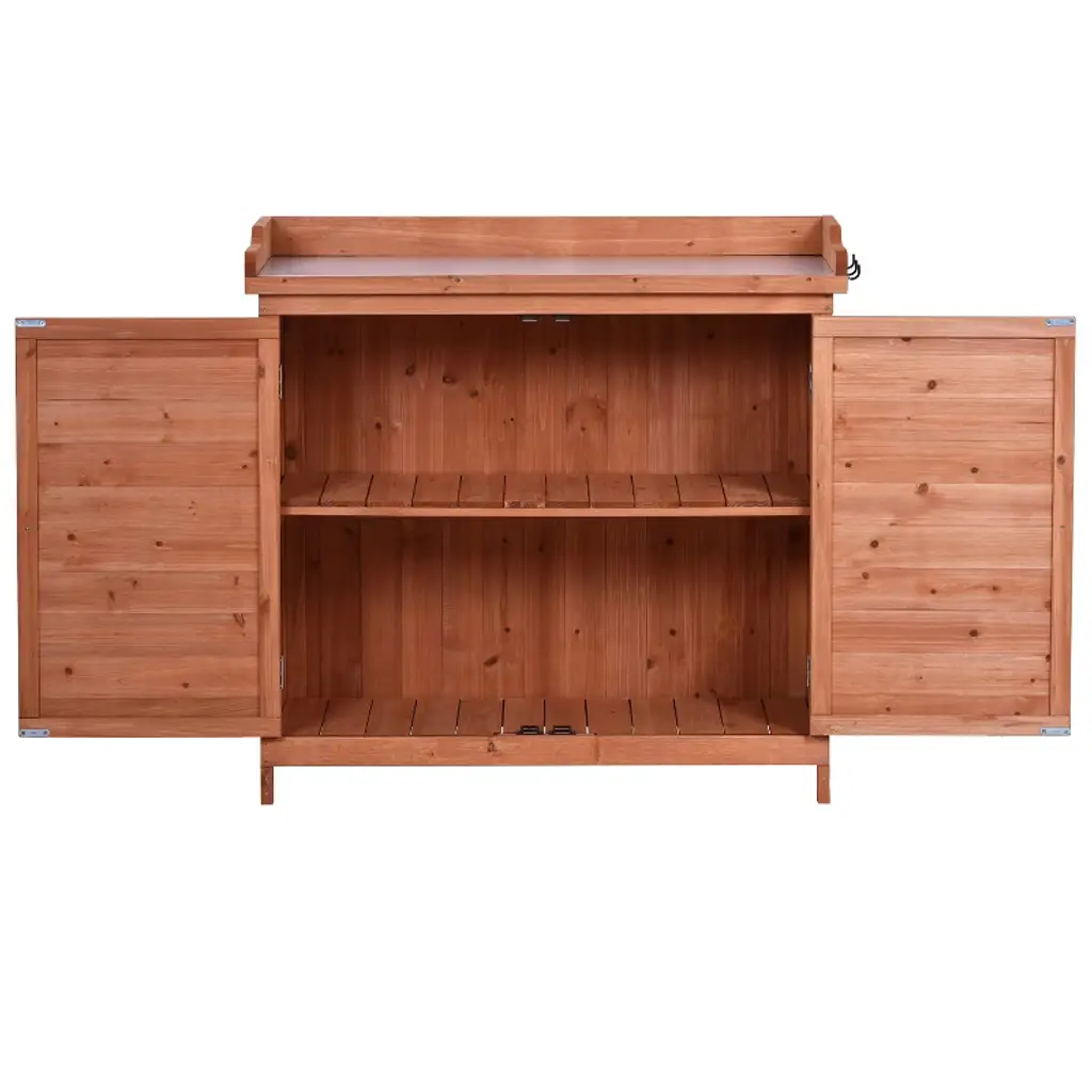 Cesicia Outdoor 39 X 19.1 X 37.4 Inch Potting Bench Table,storage Cabinet With 2-tier Shelves And Side Hook, Orange