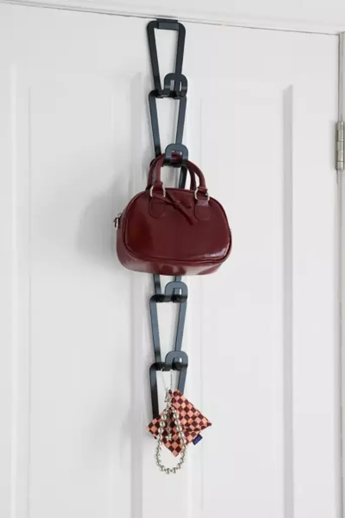 Keep your small space organized with this over-the-door coat hook made from durable steel. This steel closet organizer features six hooks to store your jackets, tote bags and other lightweight accessories. **Features** \- Chain Over-The-Door Multi-Hook \- Small space storage essential - perfect for your dorm room & closets \- 6 Hooks to hold your coats, bags & accessories \- Fits over doors with 1.5" thickness \- Versatile - use it as a coat hook or closet organizer **Content + Care** \- 100% Steel \- Wipe clean \- Imported **Size** \- Dimensions: 3.2"l x 3"w x 30.3"h \- Weight limit: 2.2 lbs \- Weight: 1.4 lbs