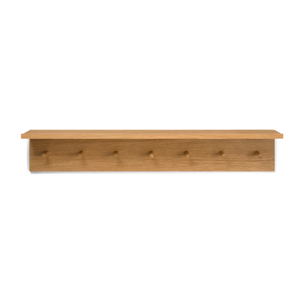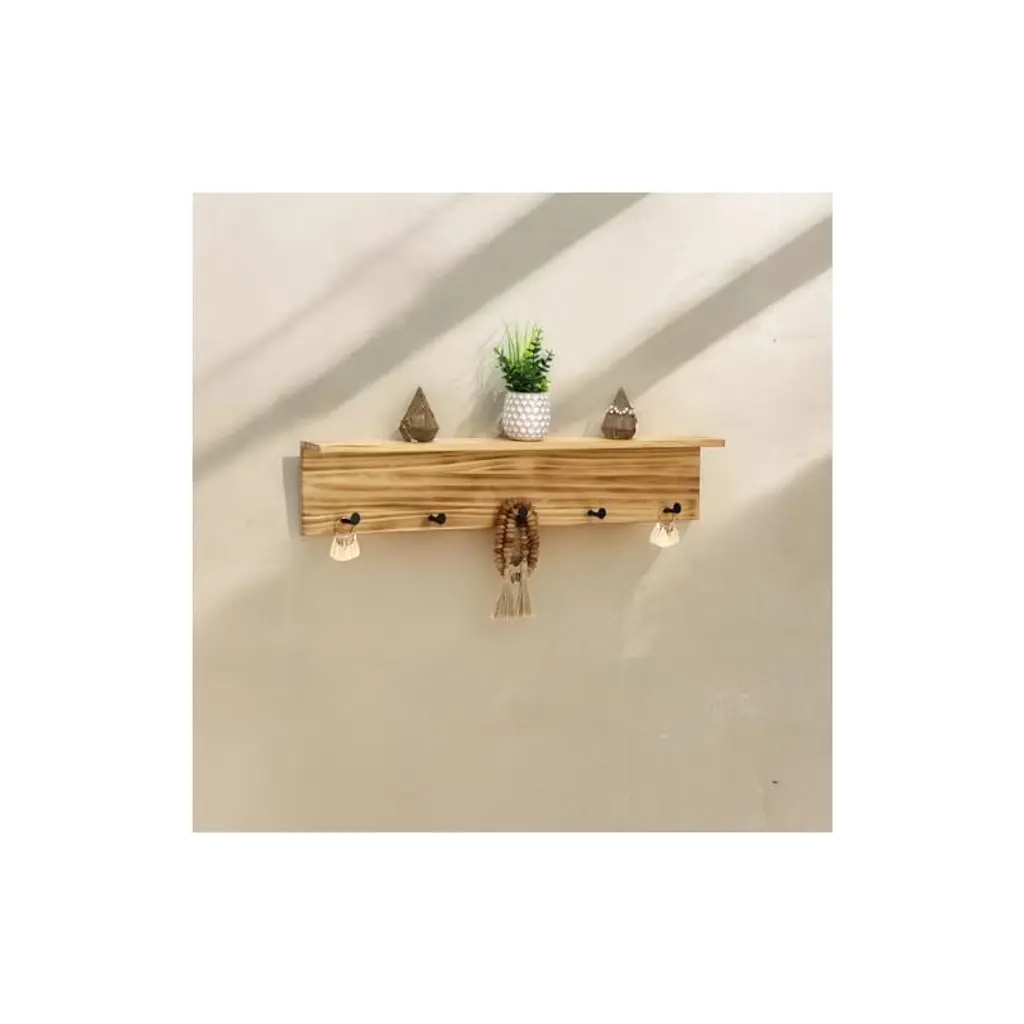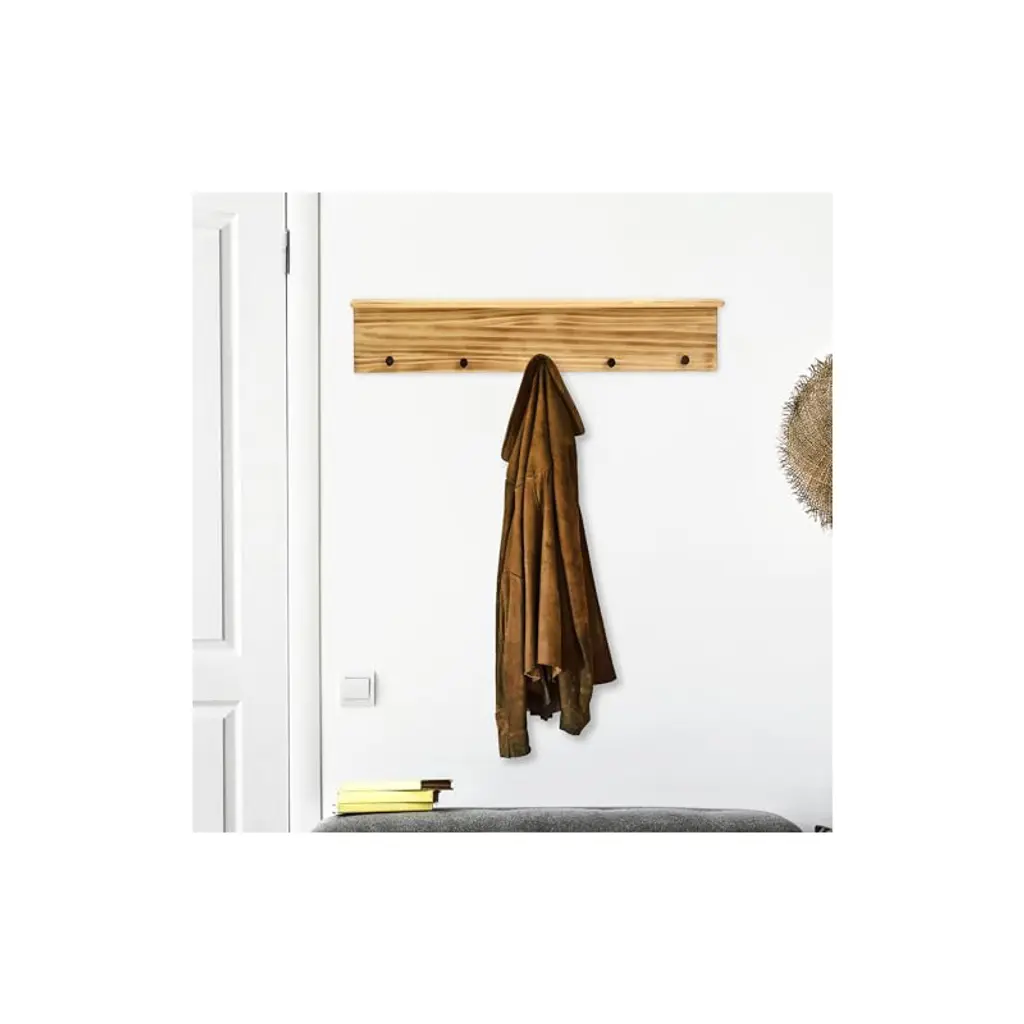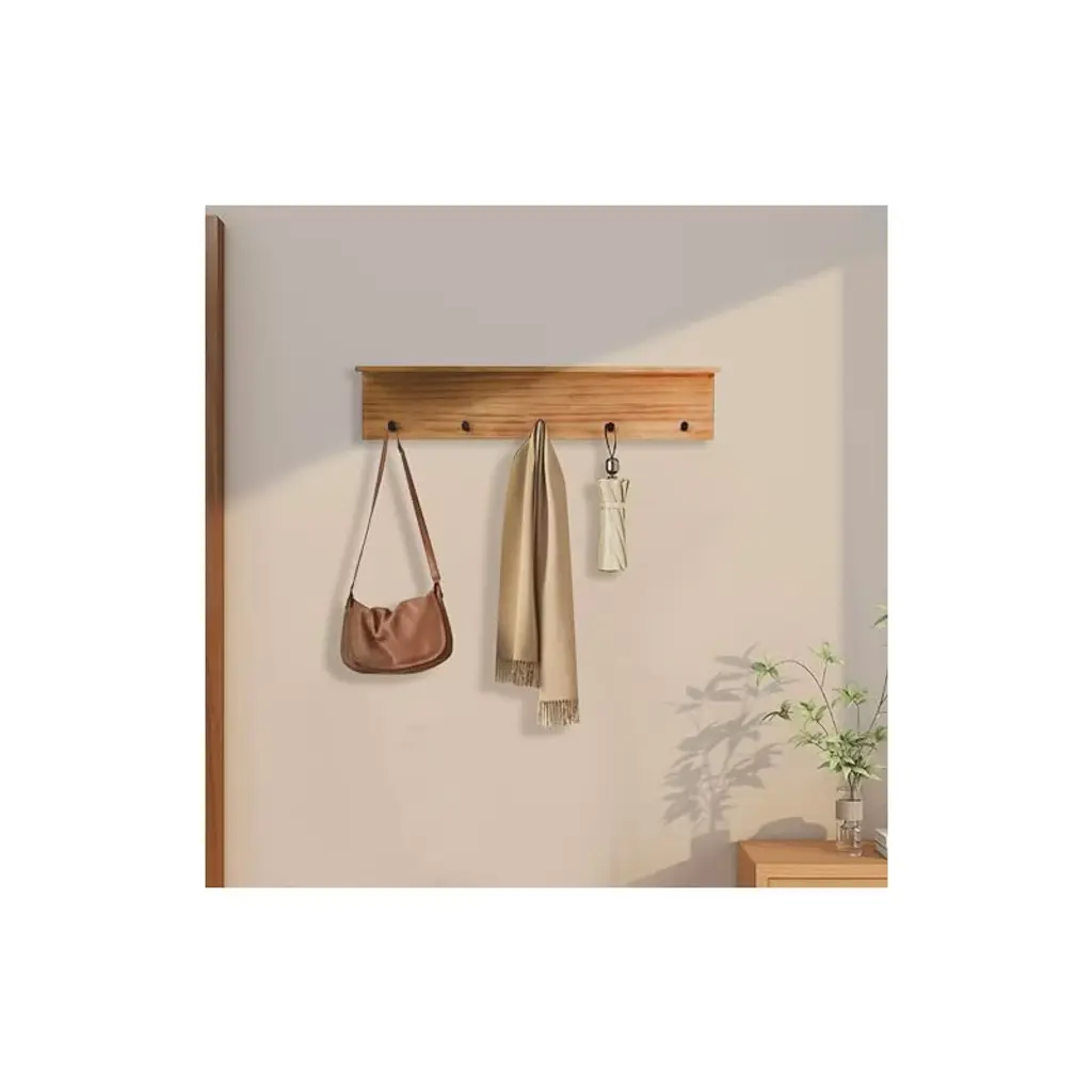 The Aldervale 5 Hook Shelf offers both style and functionality. Handcrafted with a blend of wood and metal, it features five sturdy hooks on a solid wood frame, providing ample space to hang coats, bags, or hats. The top shelf area adds extra storage or display space. Simply unbox and enjoy the convenience of this beautifully crafted piece. Please note, hanging hardware not included.