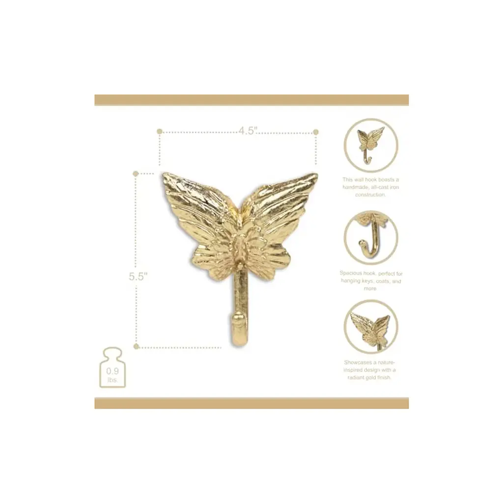 Carefully handcrafted from cast iron, this decorative hook offers both style and durability.With a sleek, minimalist aesthetic, this hook enhances contemporary decor with a natural and artistic touch twist.At 5.5 inches, it is sized perfectly for doorways, small spaces and more, making it great for hanging bags, coats, and more.The lustrous gold finish adds a touch of warmth and glamour, elevating the ambiance of any setting.This versatile wall hook offers practical storage for coats, keys, or jewellery while adding a decorative touch to any room.