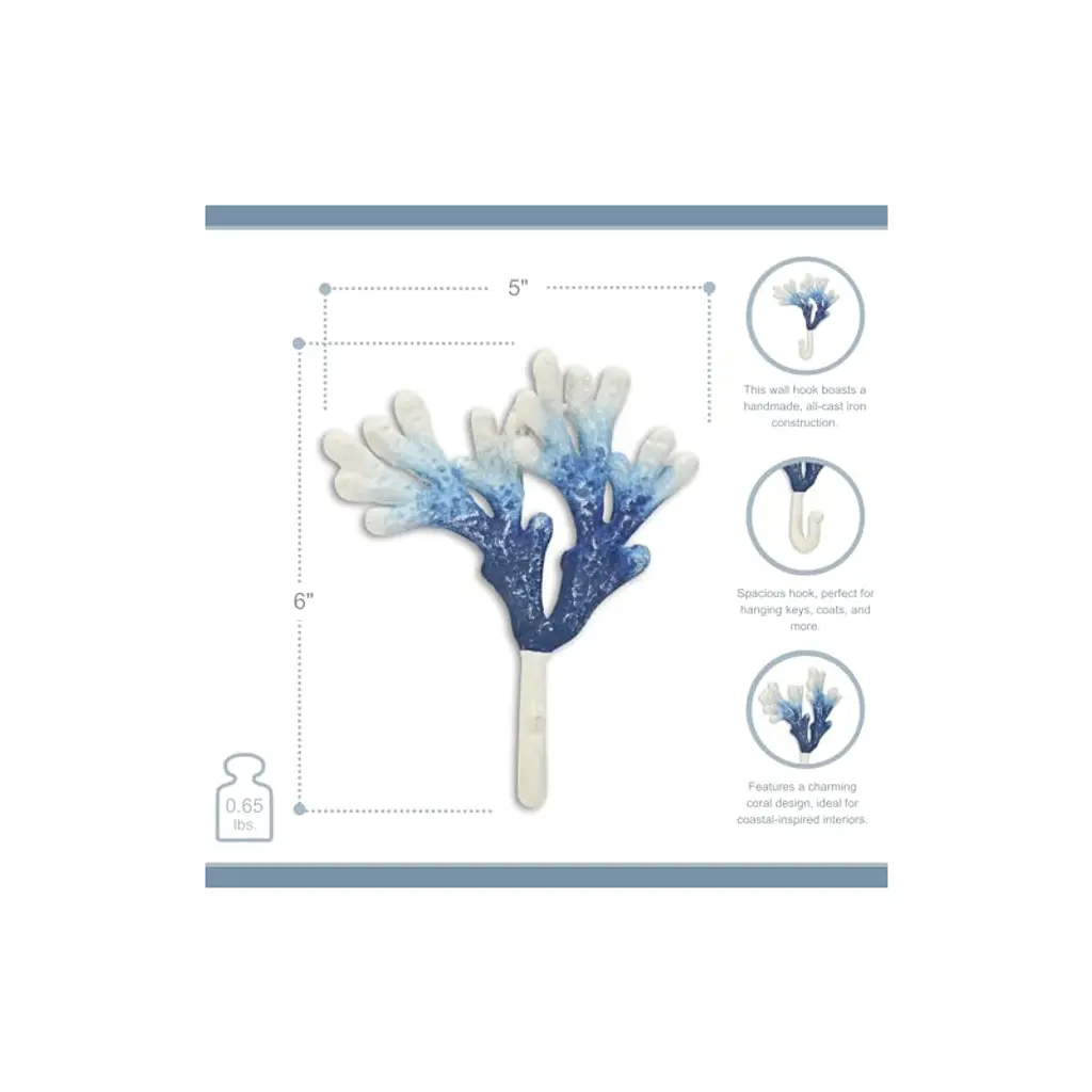 Cheung's Solva Blue & White Coral Cast Iron Wall Hook
