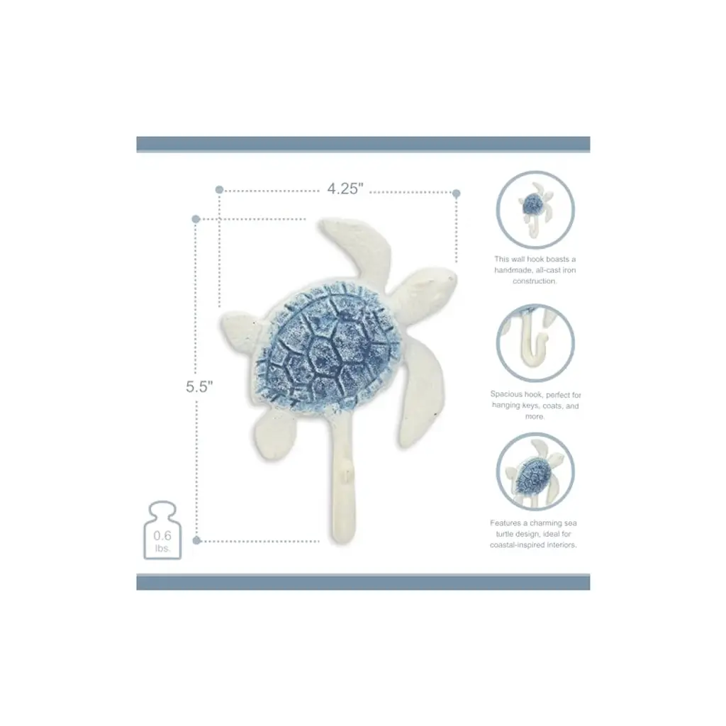 Cheung's Solva Blue & White Turtle Cast Iron Wall Hook