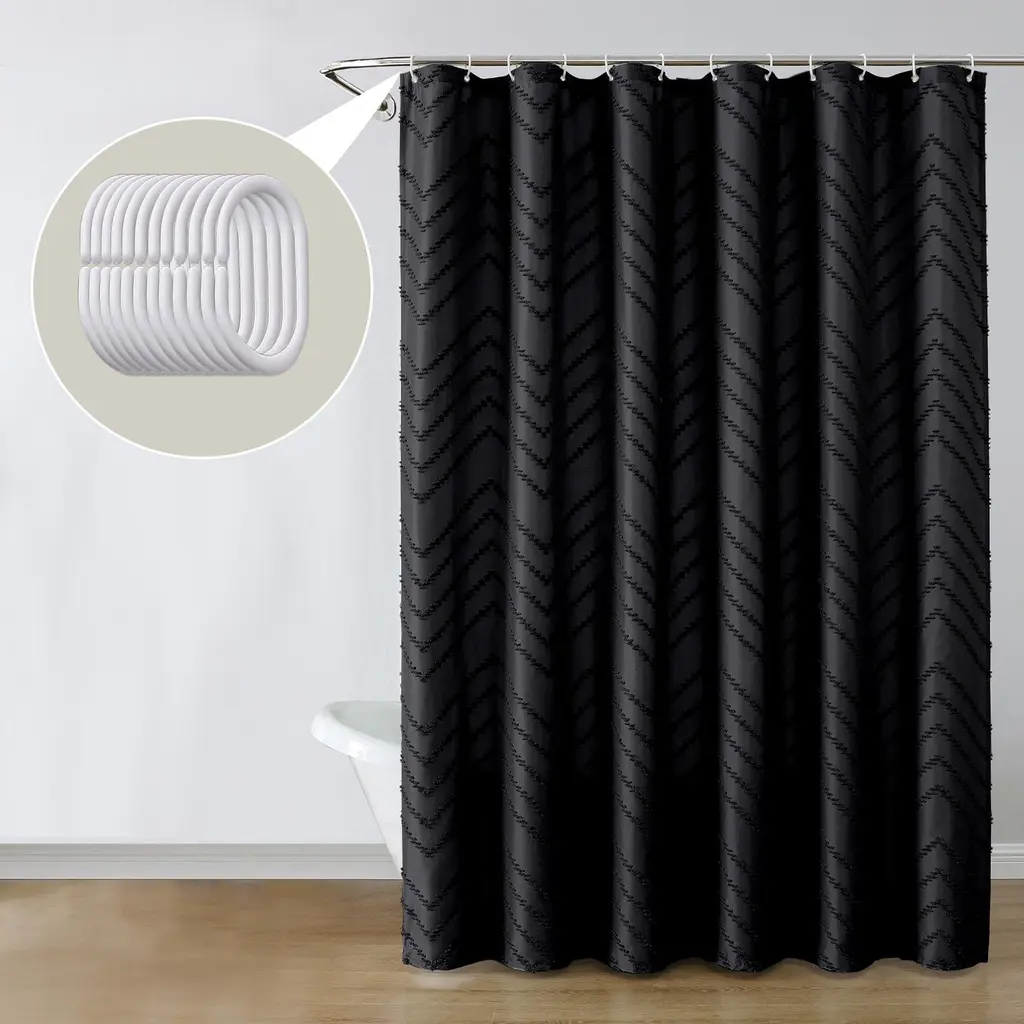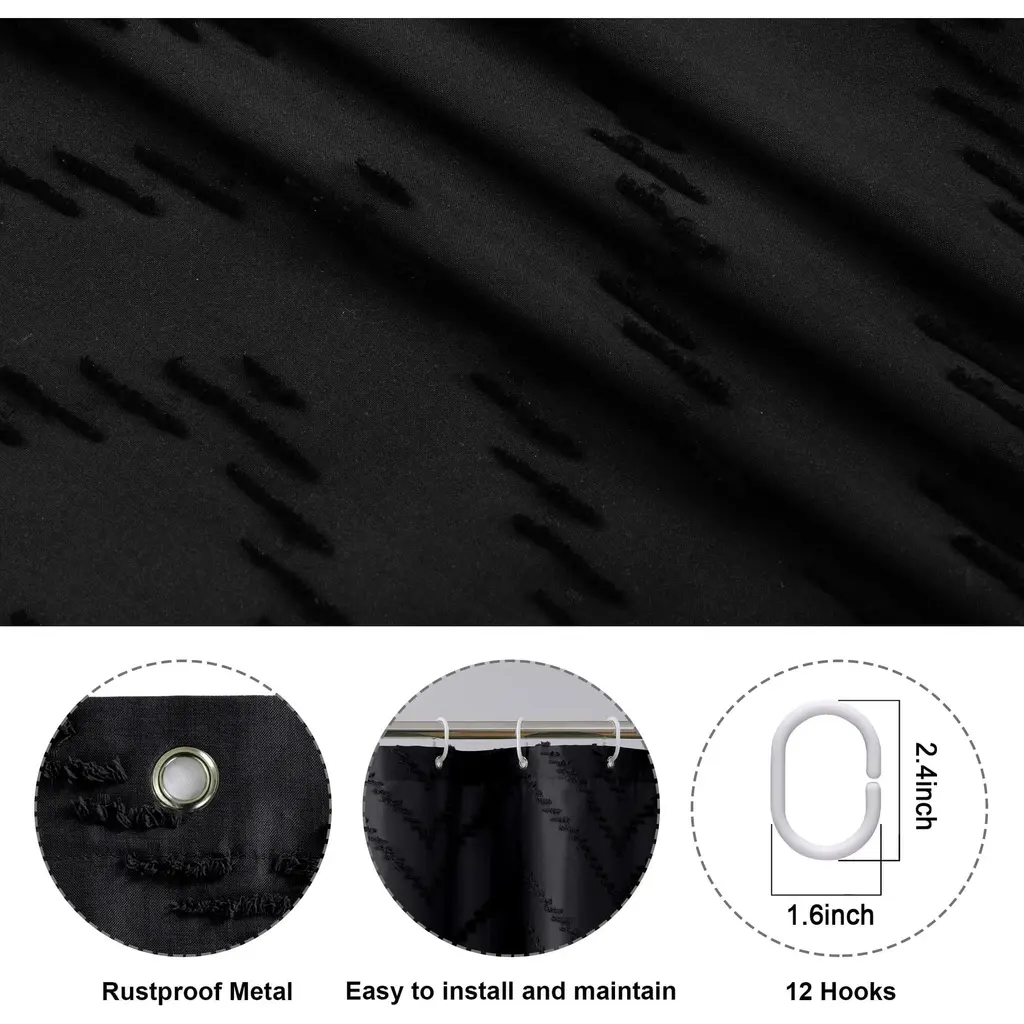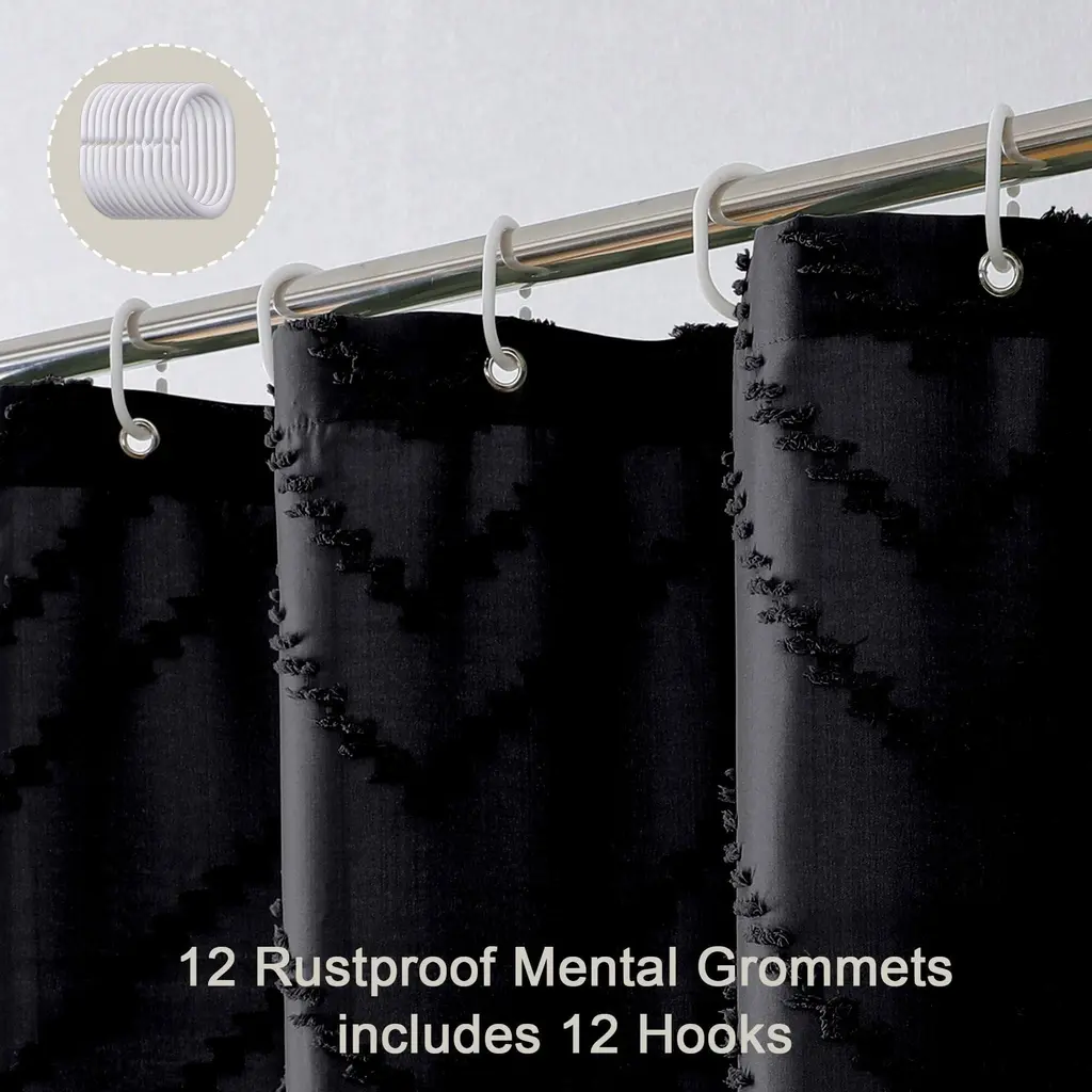 Chevron Black Shower Curtain Set 72x72 with 12 Shower Curtain Hooks