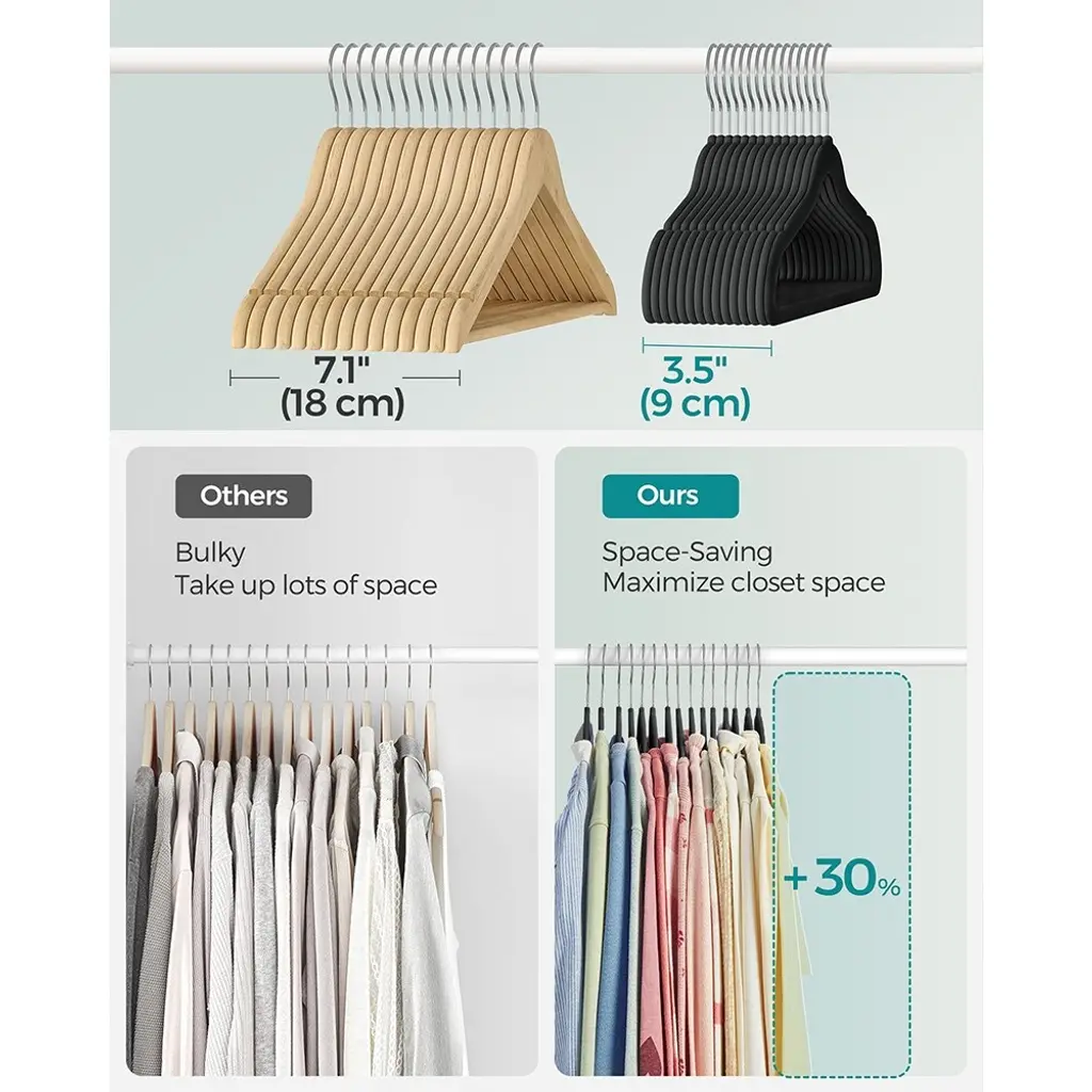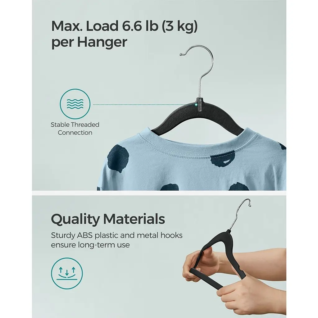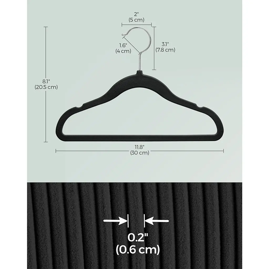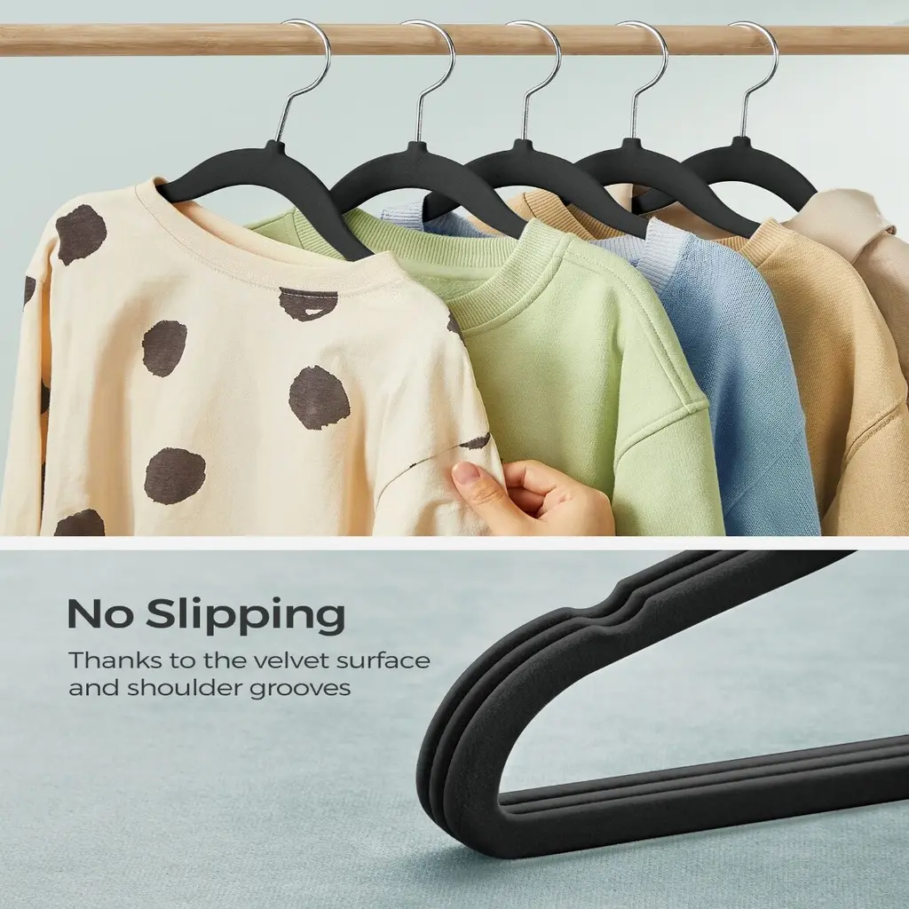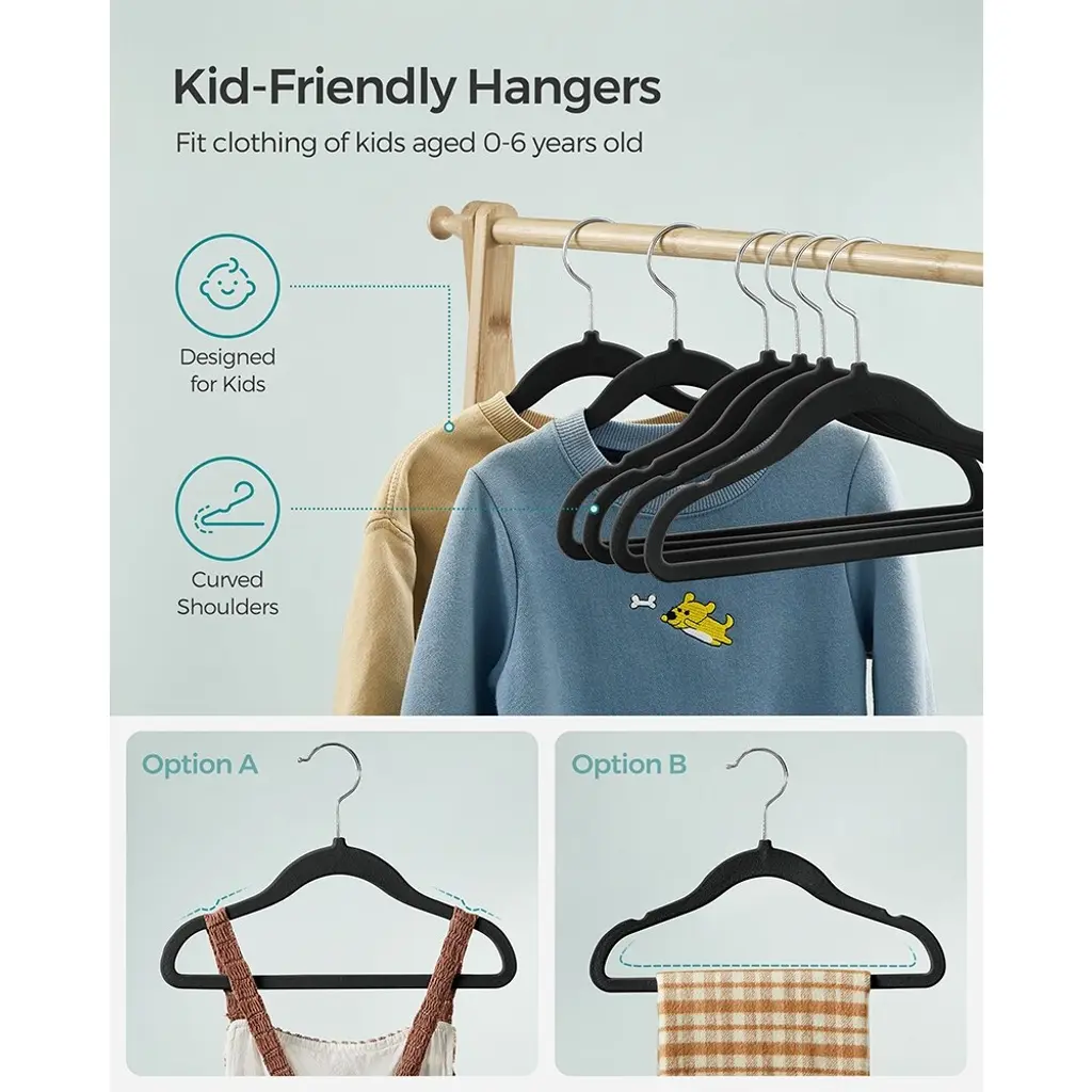 Children's Velvet Non-Slip Hangers With 360° Swivel Metal Hooks Perfectly Sized For Kids - Pack-50 - Black