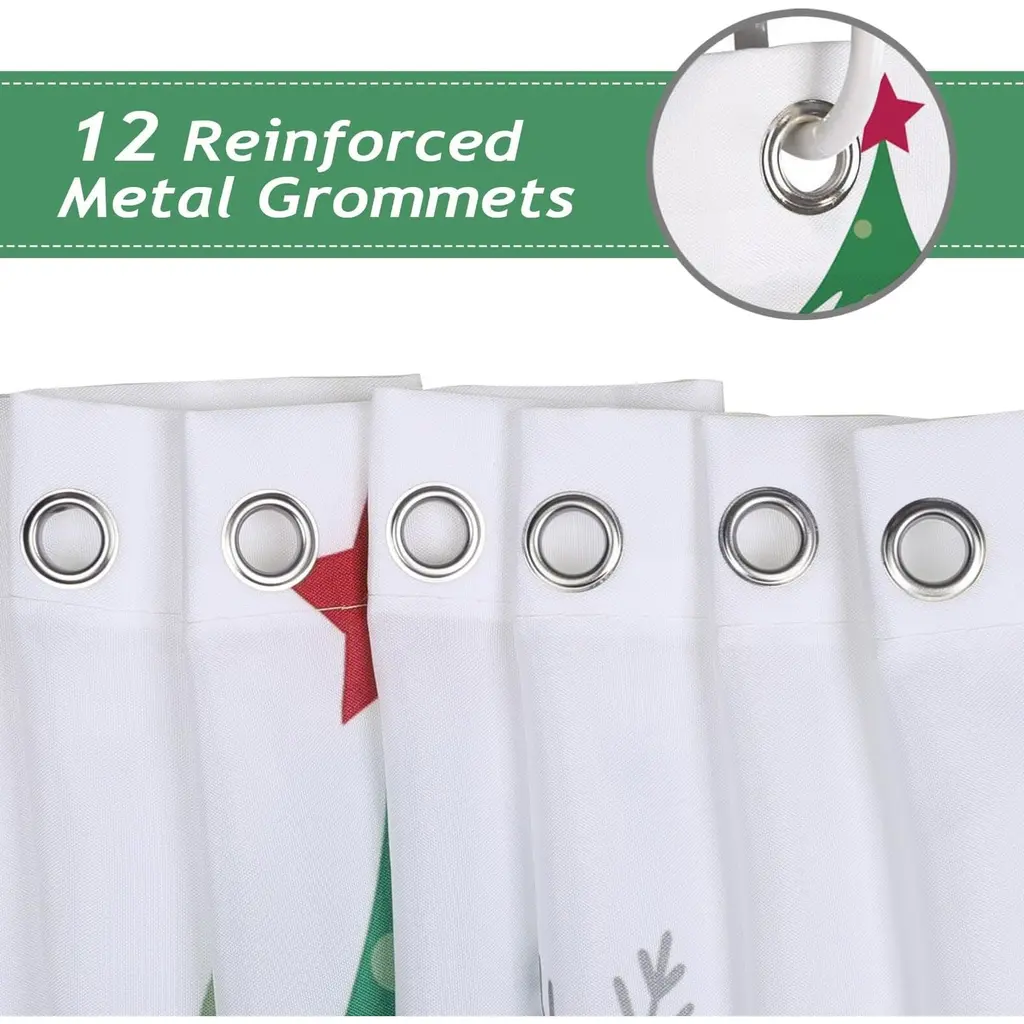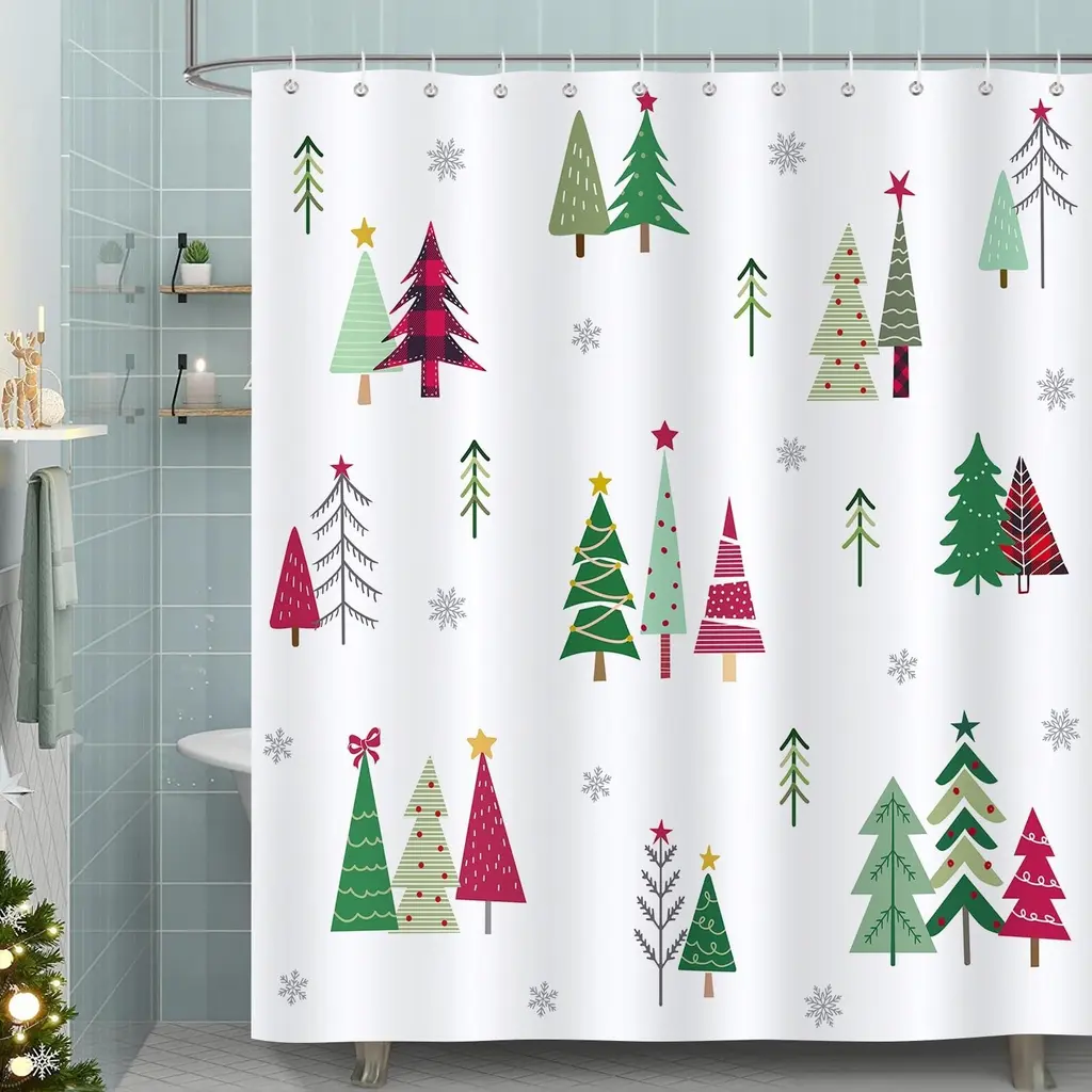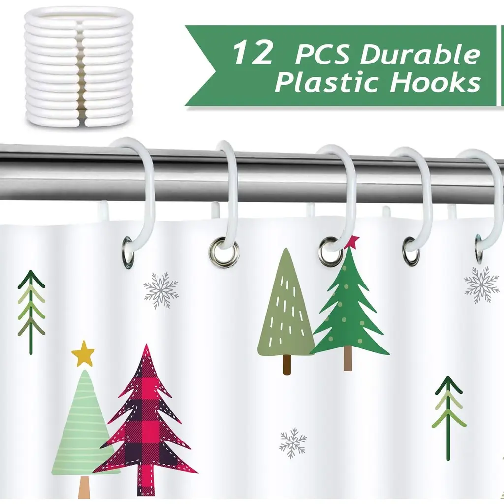 Celebrate the holiday season with this vibrant Christmas Tree Shower Curtain, measuring 72" x 72". Adorned with a festive design featuring red and green Christmas trees alongside delicate snowflakes, this curtain adds a cheerful touch to your bathroom decor. Made from high-quality, water-resistant fabric, it combines durability with style, ensuring your space stays dry. The set includes matching hooks for easy installation, making it a convenient choice for your holiday decorating needs. Perfect for creating a cozy, festive atmosphere, this shower curtain will transform your bathroom into a joyful winter wonderland!