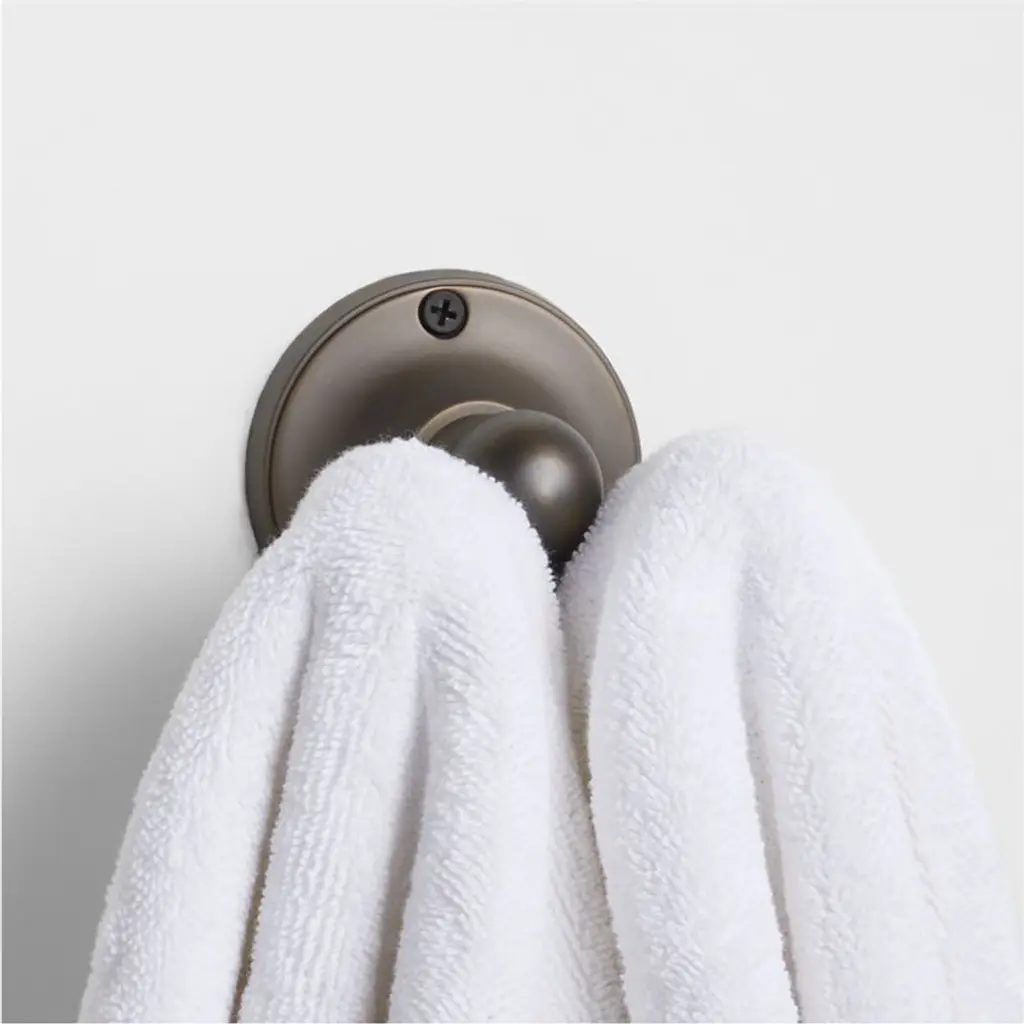 Sometimes it's the small things that pull a room together. That's why we've designed a hardware collection with modern silhouettes, clean lines and a touch of tradition to give your bathroom that perfect finishing touch. We named this towel hook Classic for a reasonanchored on a round rosette base, two hooks curve into ball finials for a timeless look. Crafted of brass with a brushed deep bronze finish, the double hook has smooth edges and a slim profile. Hardware is included to make it easy to refresh the look of your powder room or bathroom.