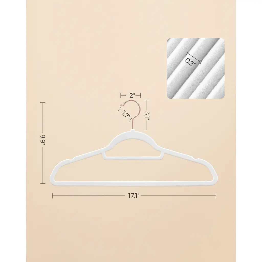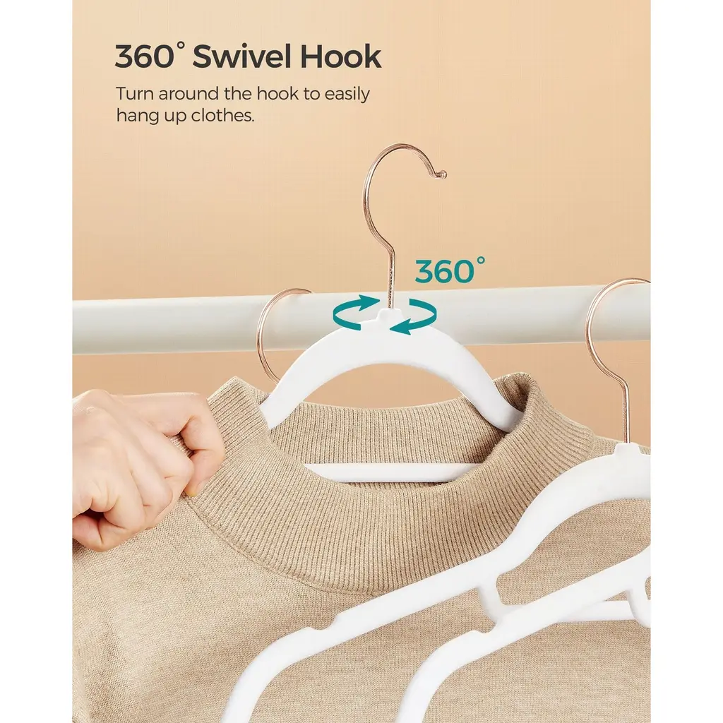 Clothes Slim Velvet Hanger With Rose Gold Swivel Metal Hook And Shoulder Notches Perfect For Heavy Coats Or Camisoles - 50 - Cloud-White