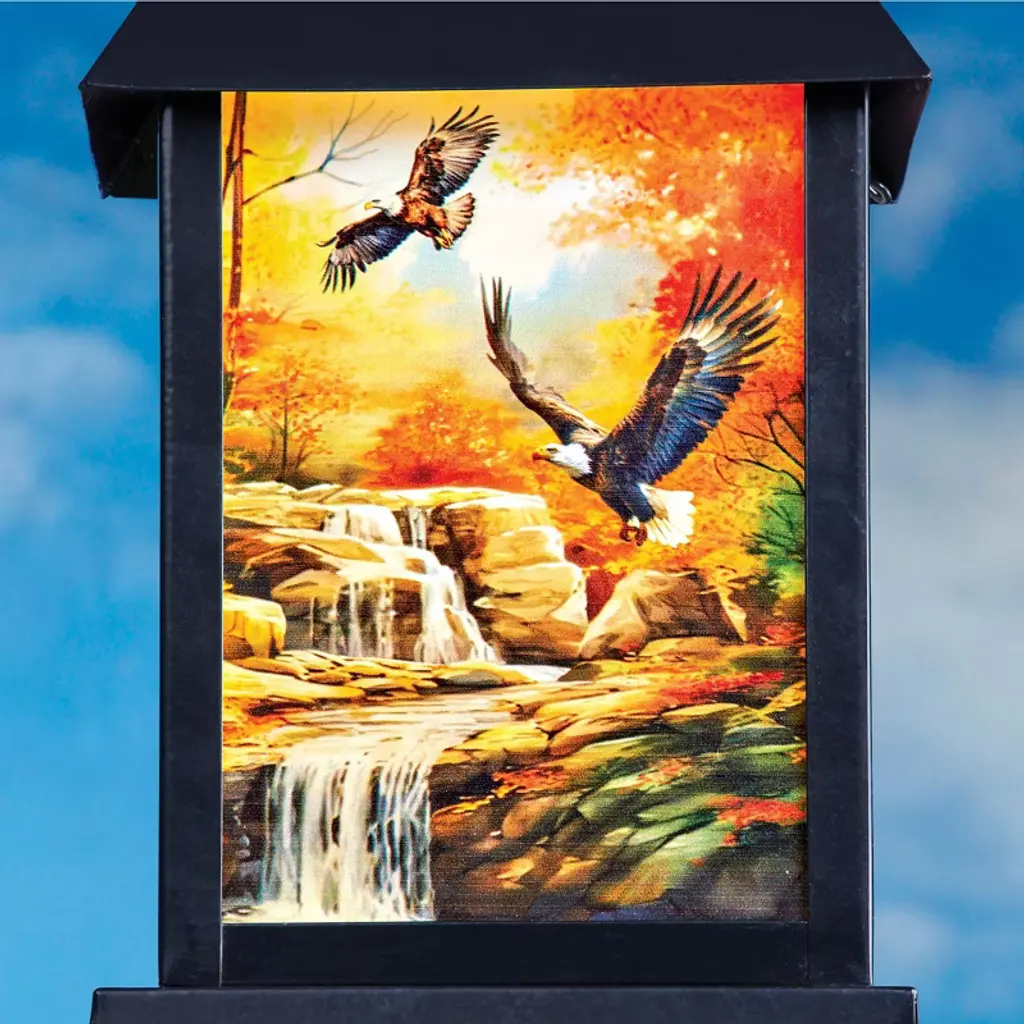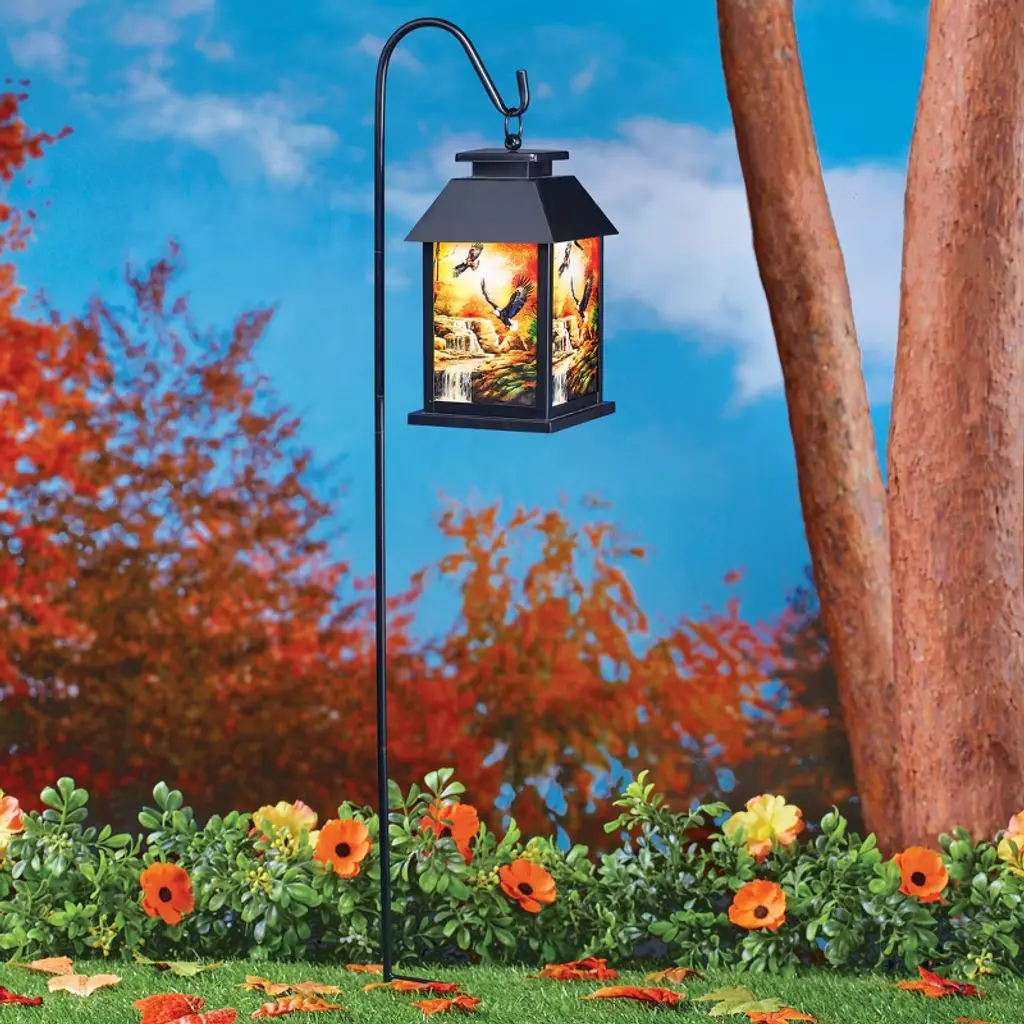 Collections Etc Solar Powered Bald Eagles Fall Scene Lantern With Shepherd's Hook
