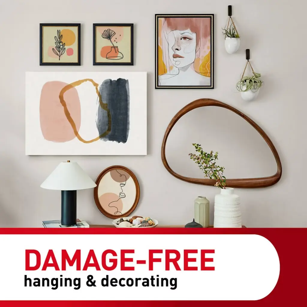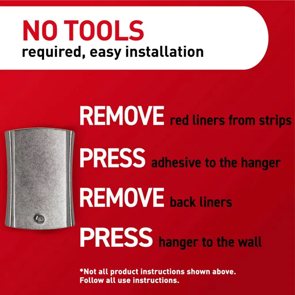 Command Metal Universal Frame Hangers inspire endless possibilities for personal decorations, as they hang sawtooth, D ring, wire-backed and keyhole hanging frames damage free, without the use of nails or tools. A great home improvement item, these frame hangers stick on a variety of smooth surfaces without leaving holes, marks or sticky residue. Use these wall hangers to hang framed pictures, mirrors and canvas art. Simply mount these no tools wall hooks on painted walls, finished wood, painted concrete cinder blocks, laminate, glass, metal and tiles and enjoy the damage free hanging of your favorite decorations. Perfect for home renovators and college students, use a nail free wall hanger in your home, office, apartment or dorm room to elevate the appearance of your living or working space without tools. Directions are included; follow the directions closely to use the picture hanging hooks as intended. Prior to mounting, clean the surface with rubbing alcohol to allow the frame hangers to maintain a strong bond with the surface. Lightly hold the top of the wall hook and slowly pull the no damage wall hanger straight down toward the floor to remove and prevent surface damage. Apply large Command Refill Strips to relocate your Command Universal Frame Hangers to a new area. A clever decorating and organizing solution that doesn’t damage surfaces, these picture hangers will help you fearlessly change your space. One package contains one metal hanger, four large Command Strips, and two pairs of mini Command Strips. Each Command Picture Hanger will hold up to 8 pounds. Decorate, organize and celebrate damage free with Command.