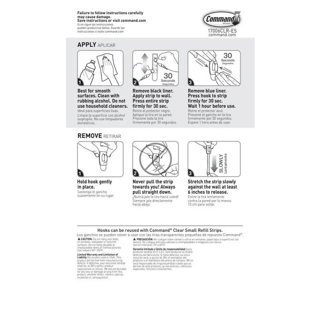 Forget about nails, screws and tacks, Command™ Clear Hooks are fast and easy to hang! The Command™ Clear Adhesive Strip adhere firmly to many surfaces, including paint, wood, tile and more. Yet, come off leaving no holes, marks, or sticky residue. Command™ Clear Hooks and Strips blend in seamlessly allowing you to show what matters most, your decor, not how it's hung up. Rehanging them is as easy as applying a Command™ Clear Refill Strip, so you can take down, move and reuse them again and again!