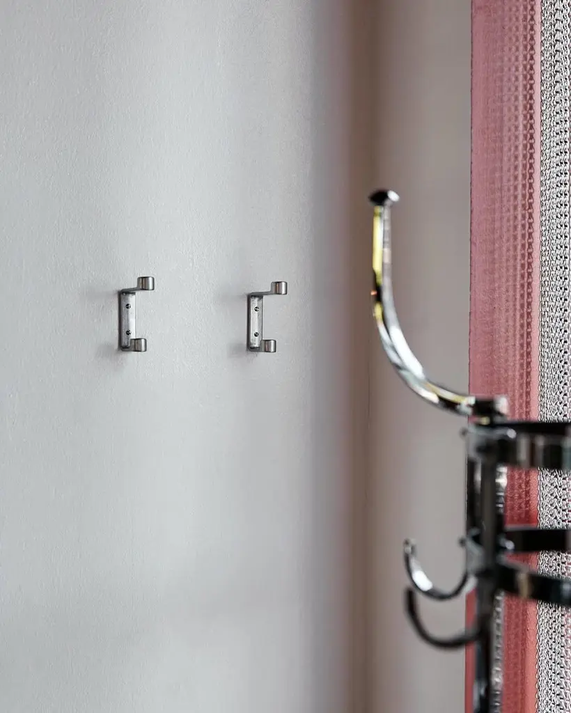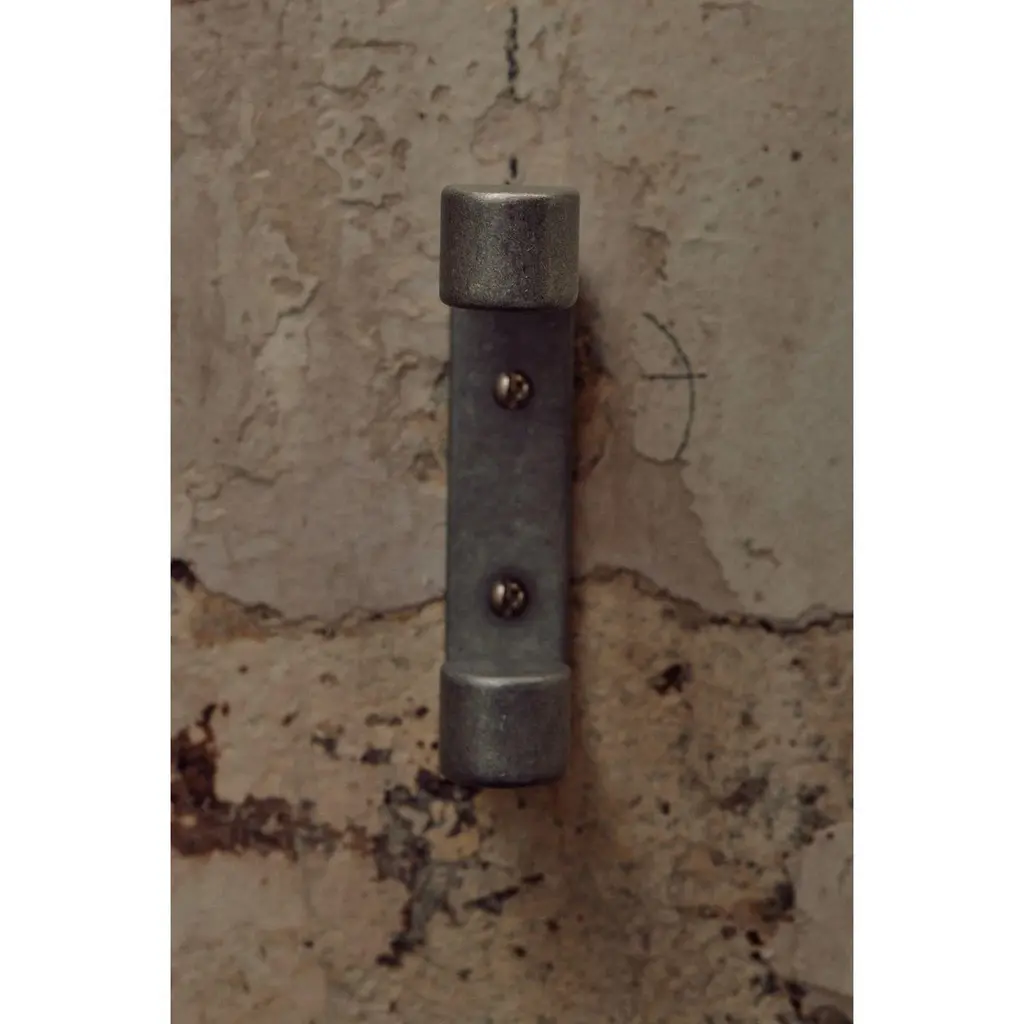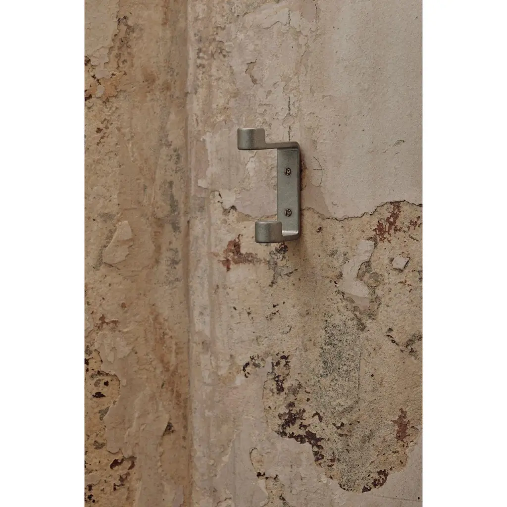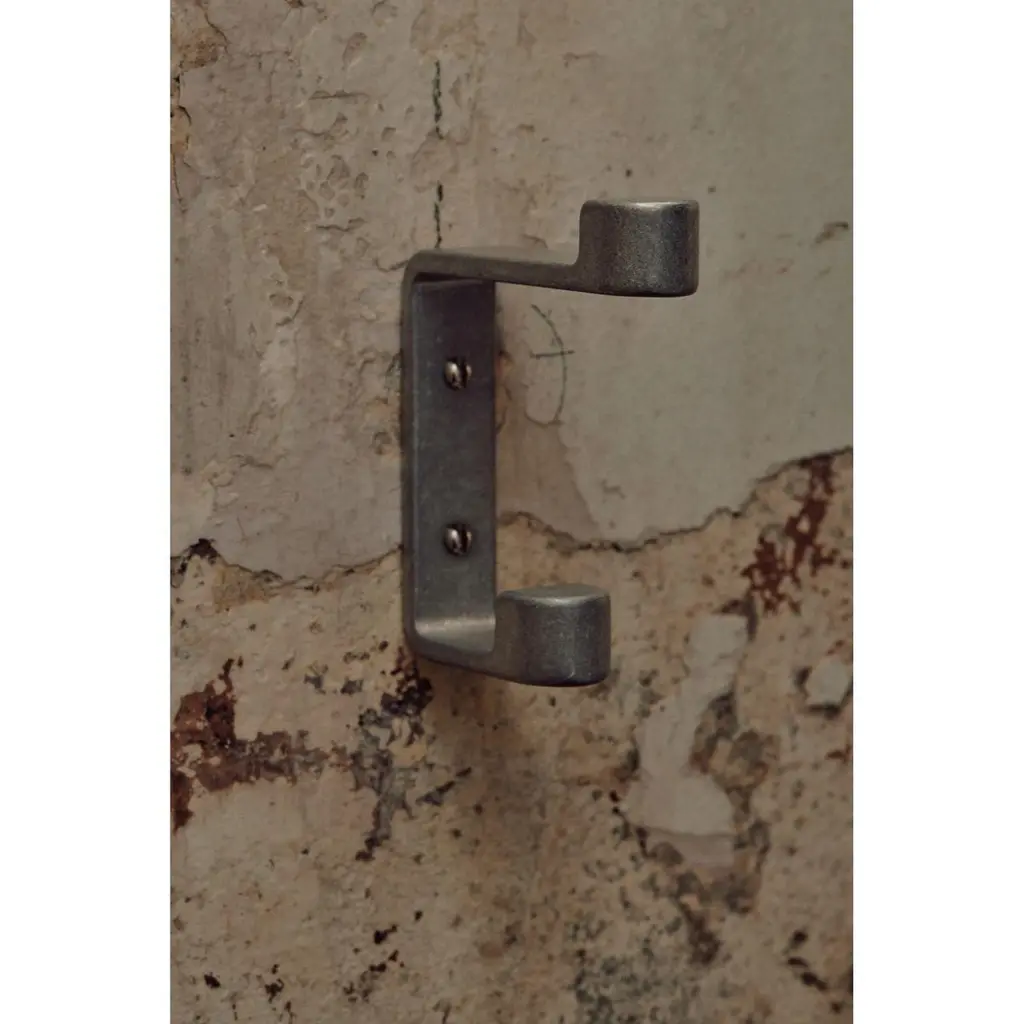 Aluminium Ribbon Hook by Henry WilsonDimensions: W 2 x D 8 x H 12 cmMaterials: AluminiumThe Ribbon Hook is sand cast in solid aluminium. Ribbon hook has two protruding blocks to allow you to hang multiple pieces on the one fixture.Our Hooks are manufactured in small batches so slight variations will occur from piece to piece. Production marks may include slight pour ripples or surface pitting. They will arrive with a bright finish but will oxidise and darken over time to reveal a distinctive patina. Simply use a metal polish to restore a like-new finish. Hooks come with matching screwsHenry Wilson's work combines a rational, democratic utility with an element of sculptural expression. There is a clear form and function in our products, but it’s important they also have feeling. We are interested in the awkward beauty that comes from something made by hand. We like to explore how imperfection can be introduced into an Industrial process, to make something at scale that retains a sense of individual charm.