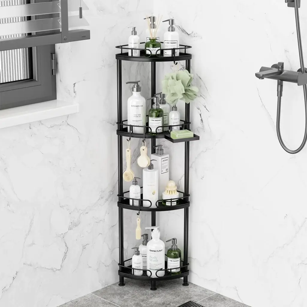 Constructed from high-grade stainless steel with precision polishing, this shower caddy boasts a lustrous, rust-resistant finish that withstands humid bathroom conditions. The sturdy metal framework provides reliable support for all your shower essentials while maintaining its sleek appearance over time. Beyond functionality, this corner caddy enhances your bathroom's aesthetic with its elegant, modern design. The thoughtful construction prevents items from slipping off while adding a touch of sophistication to your shower space. Assembly requires no tools and takes just minutes, with an intuitive design that adapts to any bathroom configuration. The freestanding unit can be easily positioned wherever needed for optimal convenience. Featuring a practical fan-shaped layout, the caddy offers generous 12.6-inch (32cm) tall shelves that accommodate family-sized shampoo bottles and multiple shower products. The tiered design keeps everything visible and within easy reach during showers. Versatility shines with four additional hooks and a dedicated soap holder, providing specialized storage for items of all sizes. From large conditioner bottles to razors and loofahs, every shower essential has its place. Four adjustable feet with rubberized bases ensure perfect stability on uneven surfaces while protecting your bathroom flooring. The non-slip design prevents shifting during use and safeguards against scratches or water damage. As the ultimate space-saving solution, this vertical organizer maximizes corner space while holding tall bottles upright. Its family-friendly capacity and smart organization transform cluttered showers into streamlined, spa-like retreats.