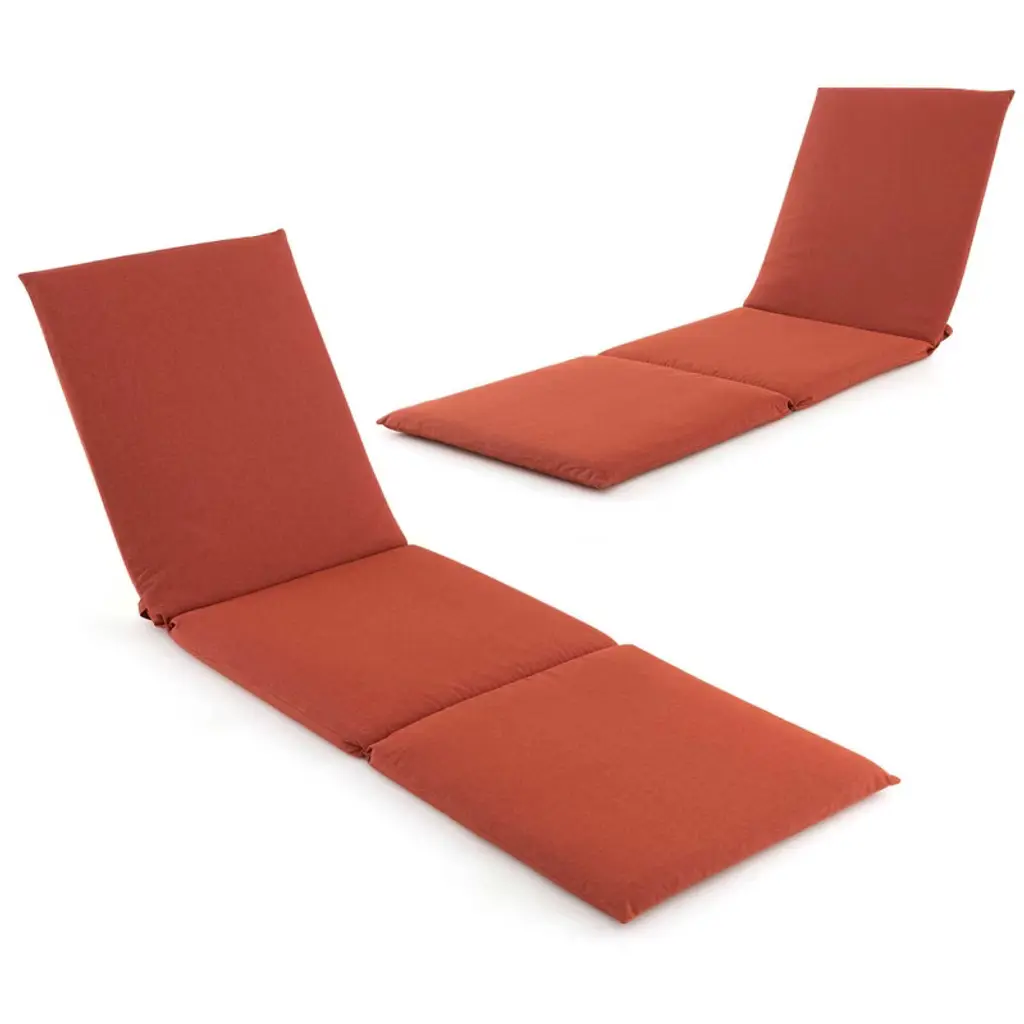 Drift into paradise with our chaise lounge cushion, where the soft embrace of thick foam meets unmatched comfort for endless sun-kissed naps. Flaunting a secure yet chic hook & loop design, say goodbye to irritating slips and slides. Bask in the sheer durability of its short fiber fabric as it withstands the test of time and weather, offering inviting softness and essential breathability. Vibrantly versatile, our tri-fold pad adapts to your whims, simplifying storage and journeys alike. Revel in effortless care for lasting beauty - a quick swipe, and it’s back to perfection. Make your outdoor sanctuary irresistibly cozy and stylish with our cushion today!FeaturesFoam-padded cushion can provide ideal support for pressure relief Soft and breathable short fiber fabric cover improves seating comfort Tri-fold lounge chaise cushion can fit different reclining positions Fixing straps with hook and loop fastener keep the cushion in place Compact folding size makes it easy to store the cushion Resilient materials offer a long lifespan even in outdoor conditions Elevate your leisure time by the pool, on the deck or in the garden To prolong lifespan, please avoid leaving the product outdoors during rainy days Color difference may occur between different lights and monitorsColor: Red Material: Short Fiber Fabric, Foam Overall Dimensions: 72" x 23" x 1.8"(L x W x Thickness) Back Cushion Length: 26.5" Seat Cushion Length: 45.5" Net Weight: 3/6 lbs Package Includes: 1/2 x Chaise Lounge Cushion