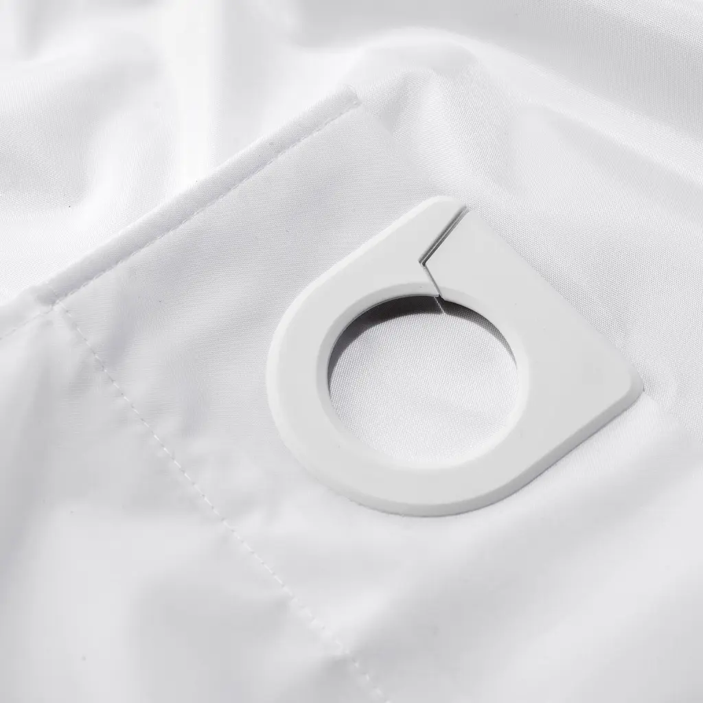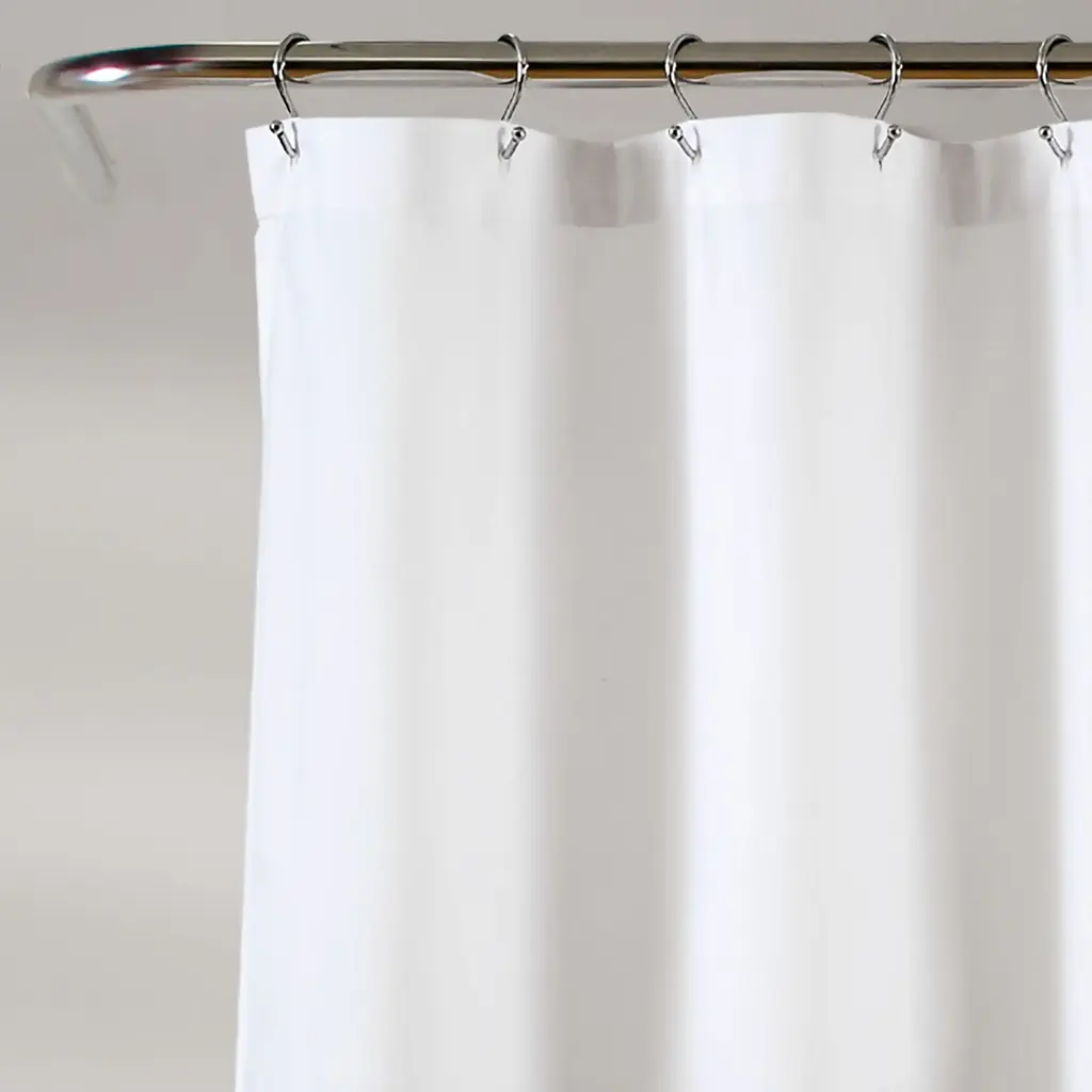 Our bright white 'hookless' shower curtain combines the convenience of built-in eyelets with a weighted 'cling-resistant' hem. The integral Hook N Hang eyelets are machine washable and easy to attach to or remove from a shower rod. No more time spent finding hooks that fit or replacing those that tear away from the curtain. Super easy to maintain, the weighted hem and water repellent fabric stops the curtain from clinging when showering. An instant, no hassle refresh to your bathroom.Features: