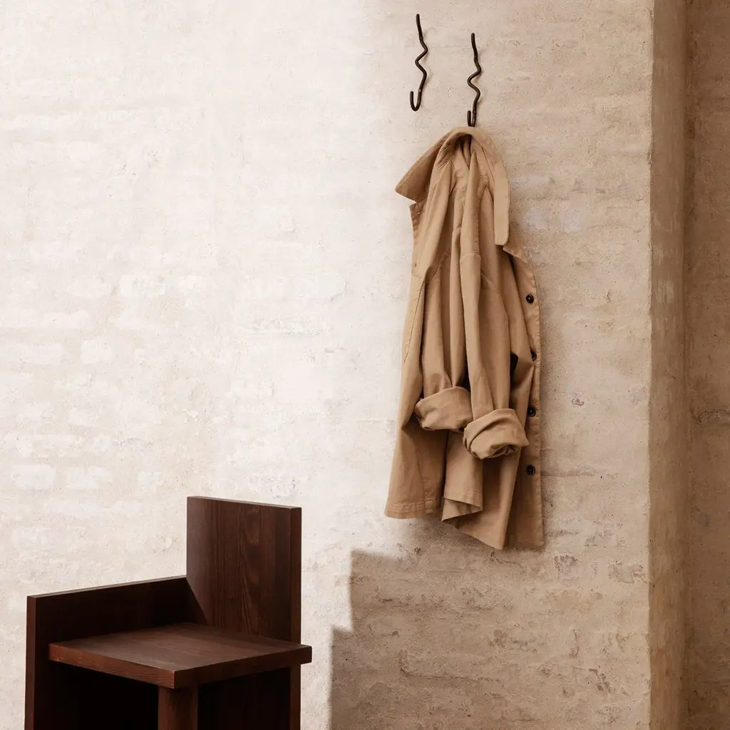 The Curvature family is a series of organically shaped hooks and hangers that have been hand formed in solid brass with a matte finish. The whimsical curves juxtapose the solidity of the material, and make a playful, functional addition to any bedroom, bathroom, hallway or kitchen. Hang towels, clothes or your favorite accessories from this generously sized hook. Crafted by hand, no two hooks are identical.