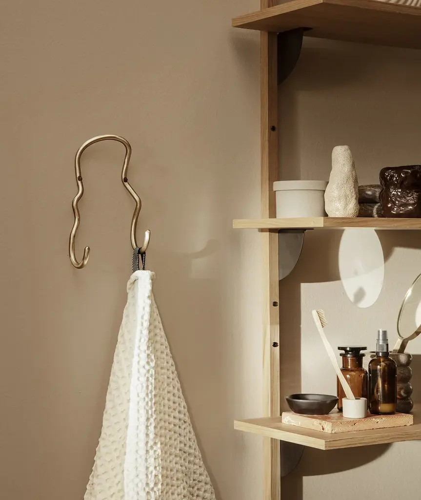 The Curvature family is a series of organically shaped hooks and hangers that have been hand formed in solid brass with a matte finish. The whimsical curves juxtapose the solidity of the material, and make a playful, functional addition to any bedroom, bathroom, hallway or kitchen. Hang towels, clothes or your favorite accessories from this generously sized hook. Crafted by hand, no two hooks are identical.