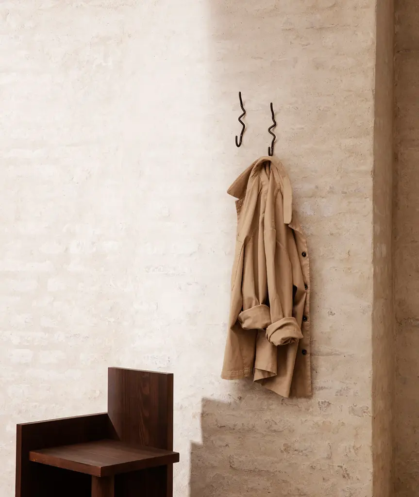The Curvature family is a series of organically shaped hooks and hangers that have been hand formed in solid brass with a matte finish. The whimsical curves juxtapose the solidity of the material, and make a playful, functional addition to any bedroom, bathroom, hallway or kitchen. Hang towels, clothes or your favorite accessories from this generously sized hook. Crafted by hand, no two hooks are identical.