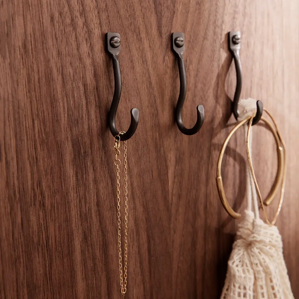 Curvature is a series of organically shaped accessories for the home that have been hand formed in pure, solid brass with a matte finish. The whimsical curves juxtapose the solidity of the material, and make a feminine, functional addition to any bedroom, bathroom, hallway or kitchen. The Curvature Mini Hooks are an ornamental yet elegantly simple hook, perfect for hanging up your everyday essentials. Crafted by hand, no two hooks are 100% identical.