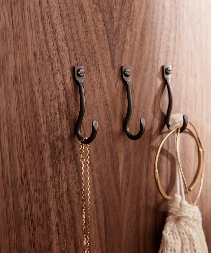 Curvature is a series of organically shaped accessories for the home that have been hand formed in pure, solid brass with a matte finish. The whimsical curves juxtapose the solidity of the material and make a feminine, functional addition to any bedroom, bathroom, hallway or kitchen. The Curvature Mini Hooks are an ornamental yet elegantly simple hook, perfect for hanging up your everyday essentials. Crafted by hand, no two hooks are 100% identical. Designed and produced by the Copenhagen-based studio Ferm Living.
