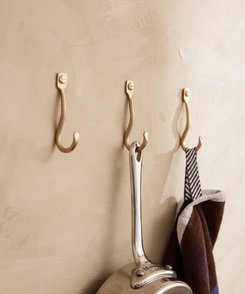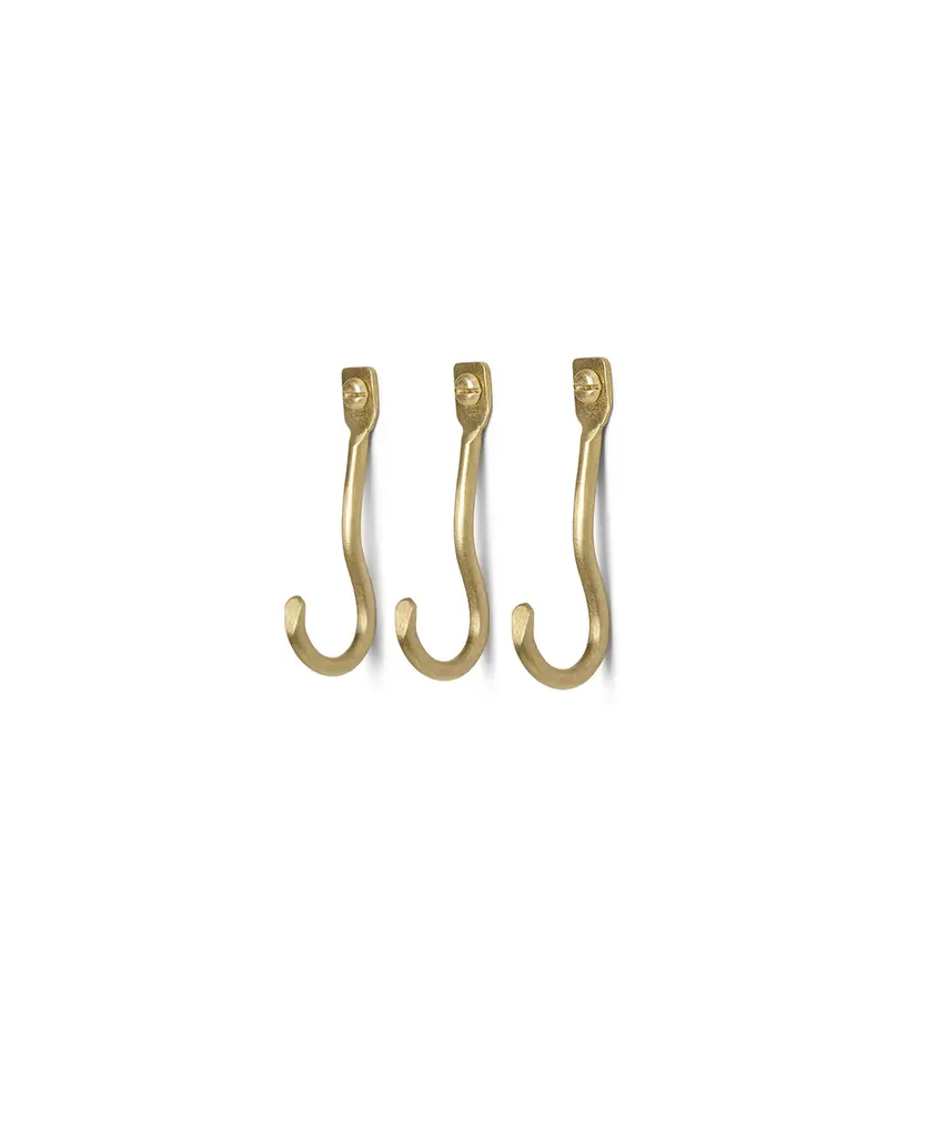 Curvature is a series of organically shaped accessories for the home that have been hand formed in pure, solid brass with a matte finish. The whimsical curves juxtapose the solidity of the material and make a feminine, functional addition to any bedroom, bathroom, hallway or kitchen. The Curvature Mini Hooks are an ornamental yet elegantly simple hook, perfect for hanging up your everyday essentials. Crafted by hand, no two hooks are 100% identical. Designed and produced by the Copenhagen-based studio Ferm Living.