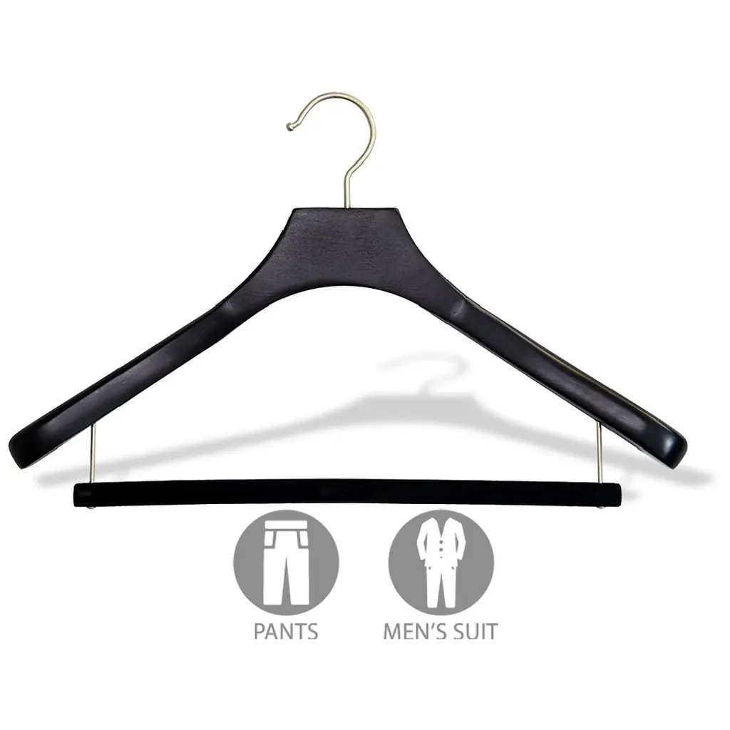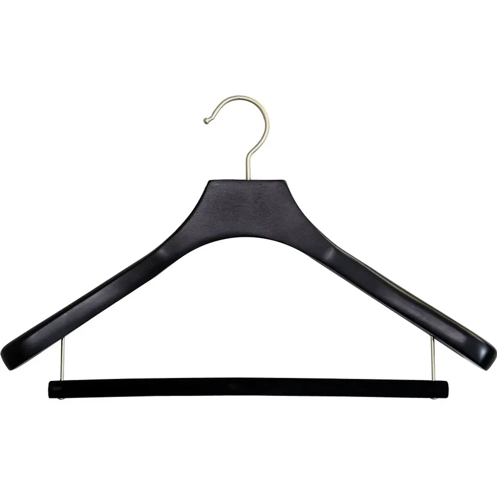 Featuring 2" wide shoulders with a sturdy hardwood body and a velvet bar for hanging pants, this luxurious hanger is ideal for coats of any size.