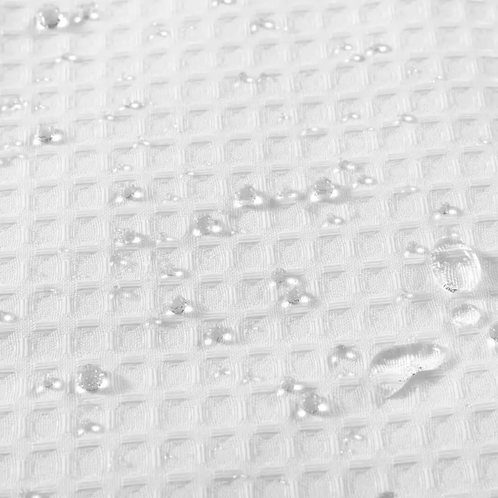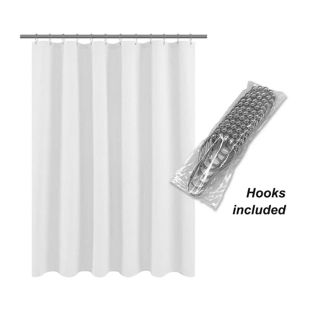 This classic Dobby Waffle shower curtain is ideal for enhancing the look of your bathroom and adding timeless elegance. Comes with durable metal hooks that ensures easy installment and smooth gliding along the shower curtain rod. This shower curtain is water repellent and can prevent water from splashing out, keeing your bathroom floor dry.Feature:Dimensions:36"Widex72"Long54"Widex78"Long71"Widex72"Long71"Widex75"Long71"Widex78"Long71"Widex84"Long71"Widex96"Long