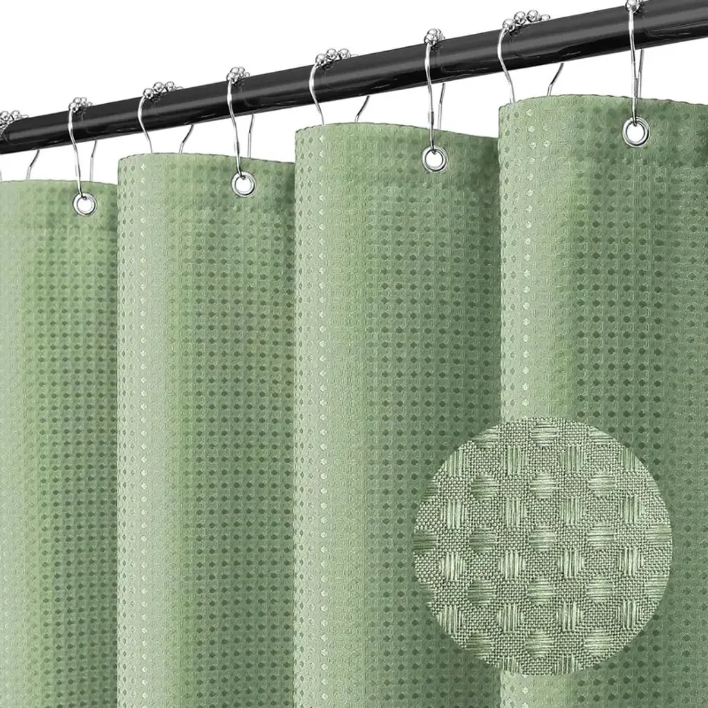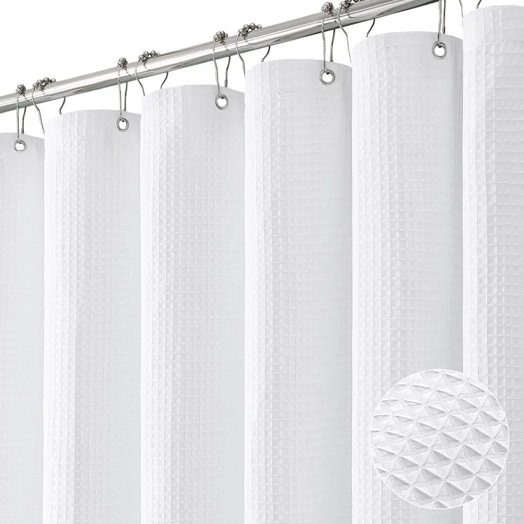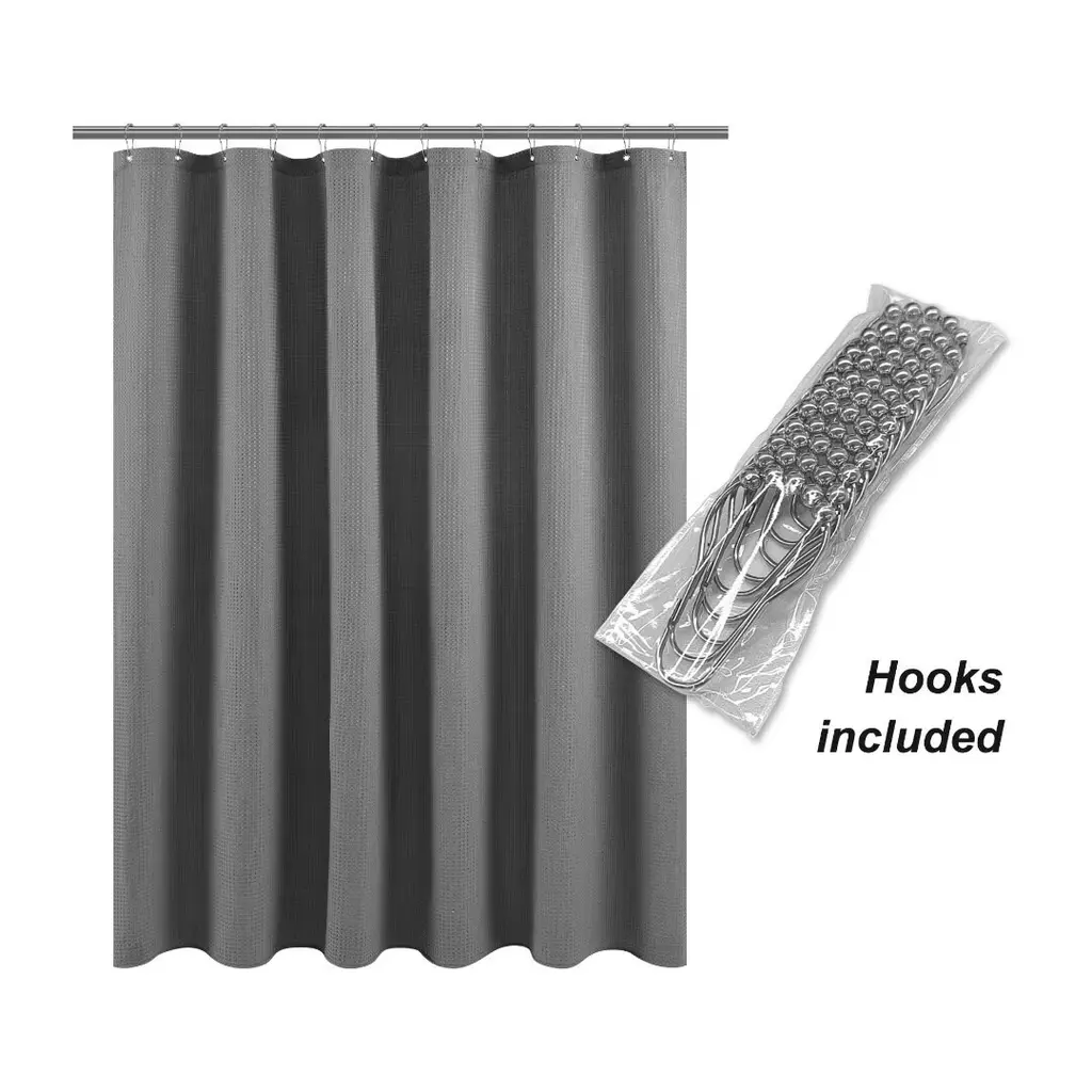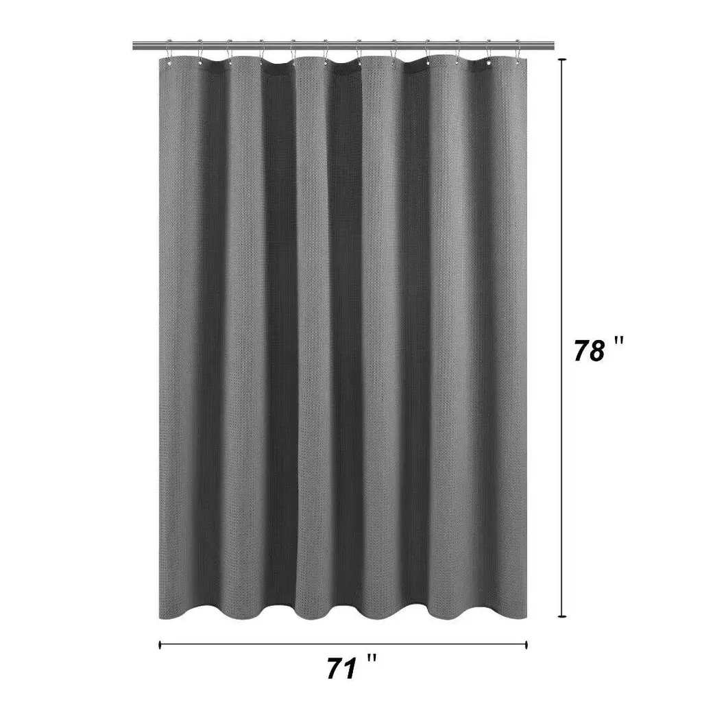 This classic Dobby Waffle shower curtain is ideal for enhancing the look of your bathroom and adding timeless elegance. Comes with durable metal hooks that ensures easy installment and smooth gliding along the shower curtain rod. This shower curtain is water repellent and can prevent water from splashing out, keeing your bathroom floor dry.Feature:Dimensions:36"Widex72"Long54"Widex78"Long71"Widex72"Long71"Widex75"Long71"Widex78"Long71"Widex84"Long71"Widex96"Long