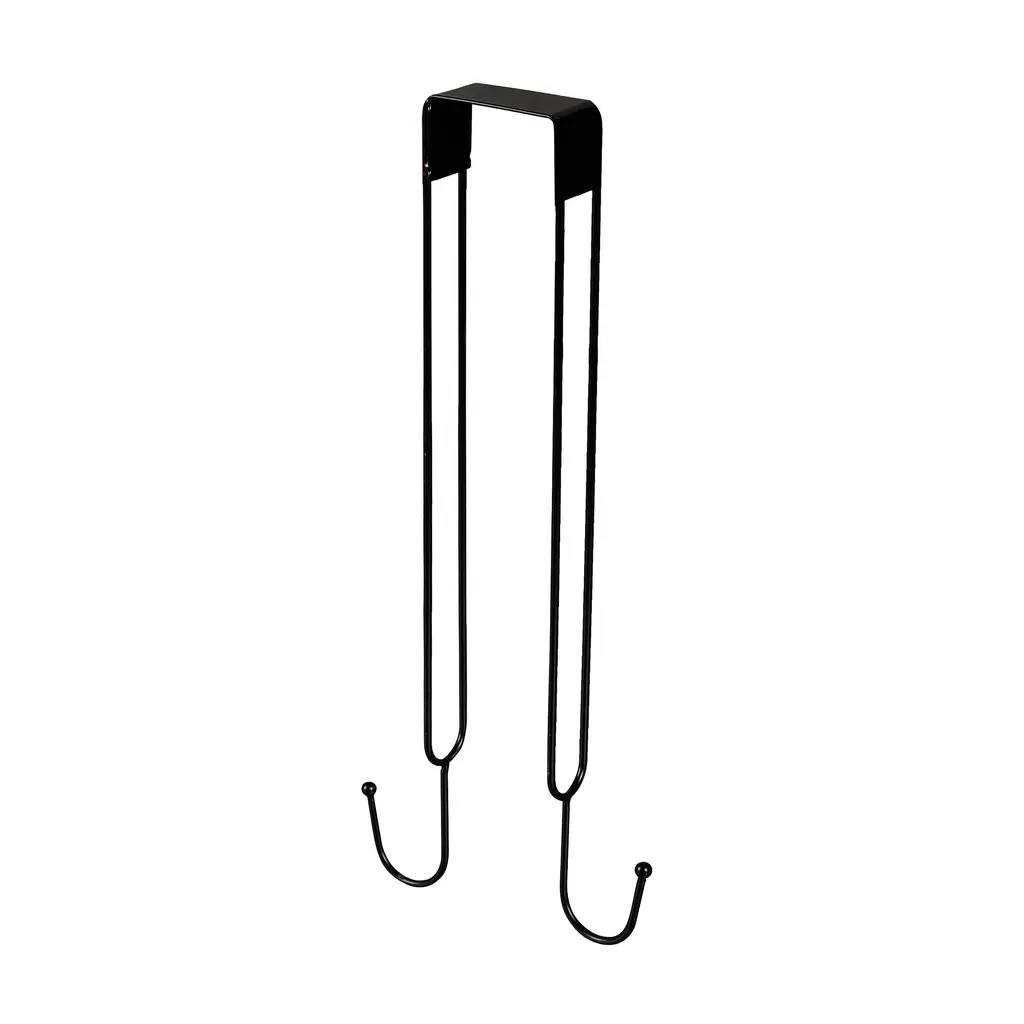Spruce up the inside and outside of your door at the same time with this two-in-one Double Hook Over the Door Hanger. The sleek black design is crafted of powder-coated metal that looks great with any hanging décor designs. Perfect for wreaths, door decor, banners, flags, and more, this versatile door hanger allows you to decorate with ease.