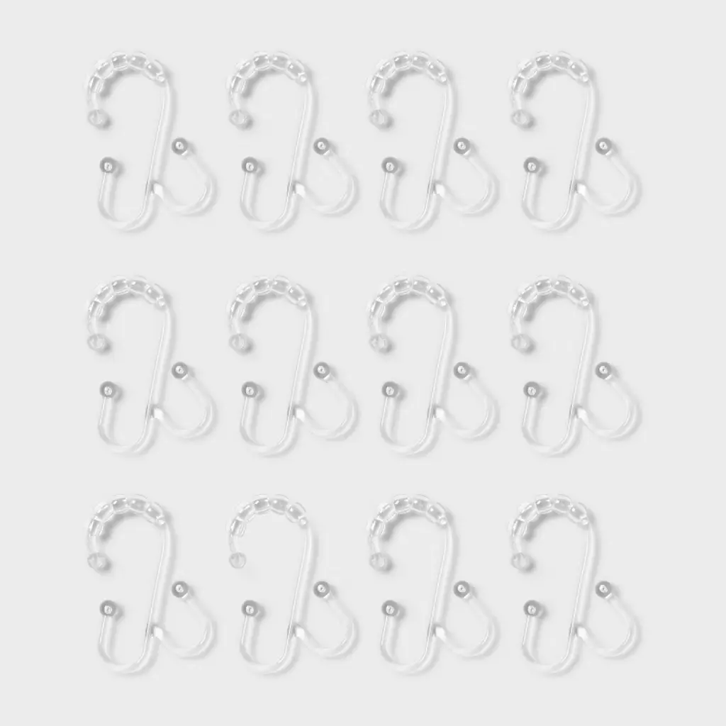 Add style and functionality to your shower space with these 12-Piece Double-Hook Shower Ring from Room Essentials™. These shower curtain rings feature a top open hook for easy installation on the rod, and the beads provide hassle-free sliding of curtains. These rings are designed with double hooks at the bottom, providing versatile options to hang your curtains. Plus, the black hue makes them easy to integrate into any decor style.Room Essentials™: Everyday Value