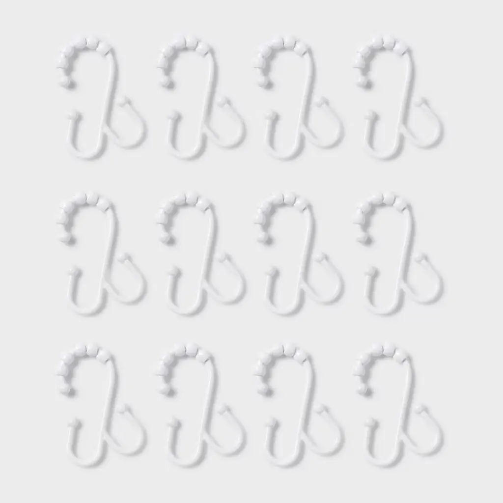Add style and functionality to your shower space with these 12-Piece Double-Hook Shower Ring from Room Essentials™. These shower curtain rings feature a top open hook for easy installation on the rod, and the beads provide hassle-free sliding of curtains. These rings are designed with double hooks at the bottom, providing versatile options to hang your curtains. Plus, the black hue makes them easy to integrate into any decor style.Room Essentials™: Everyday Value