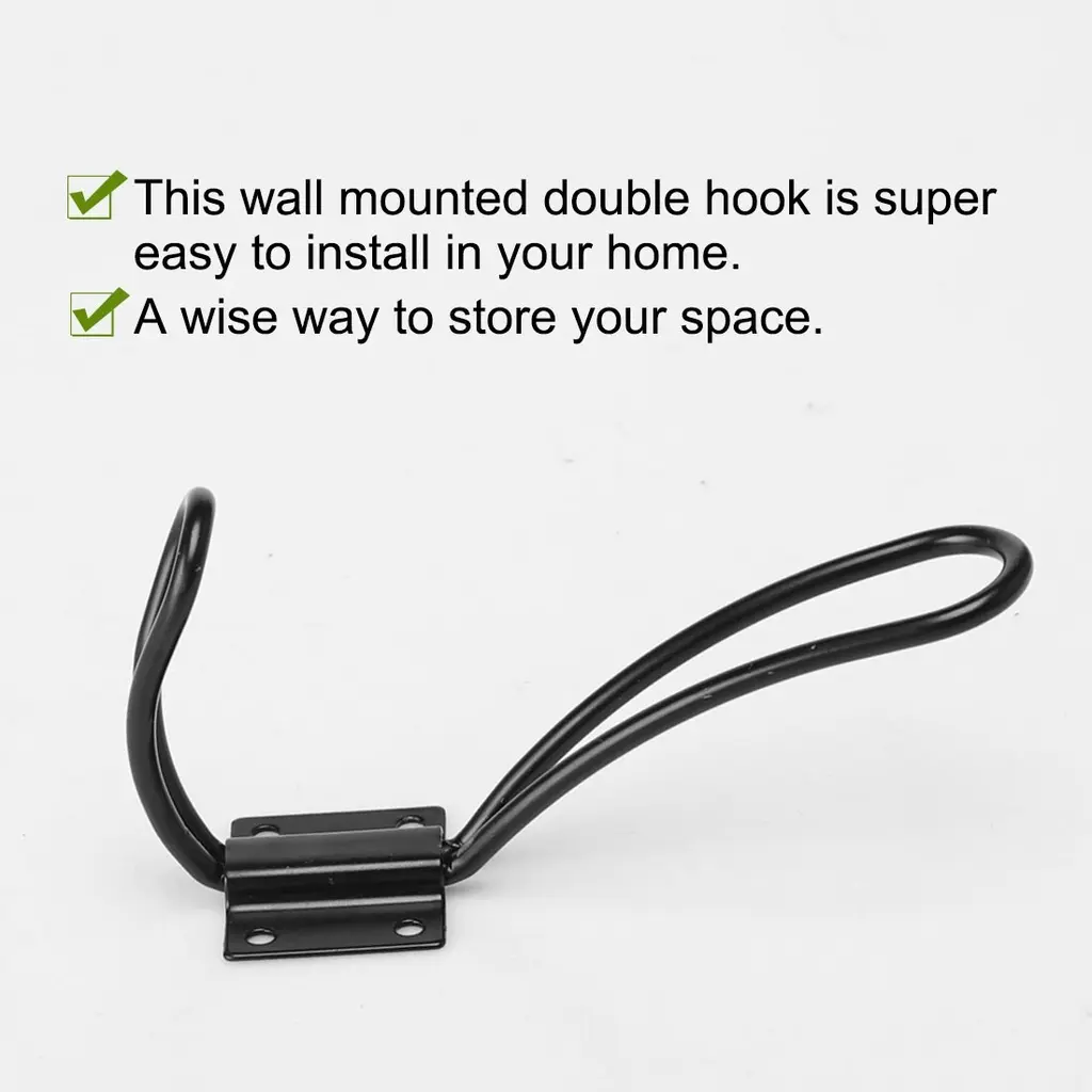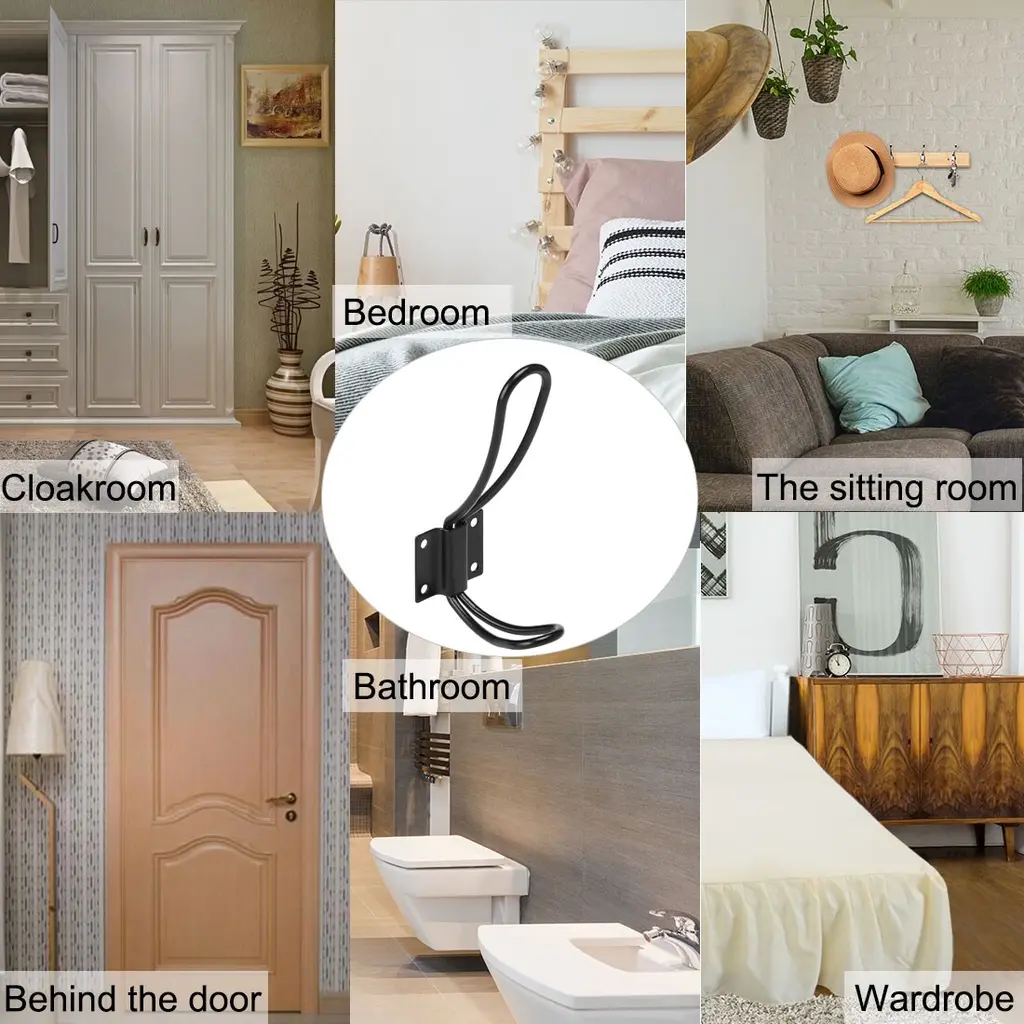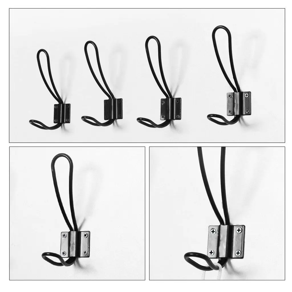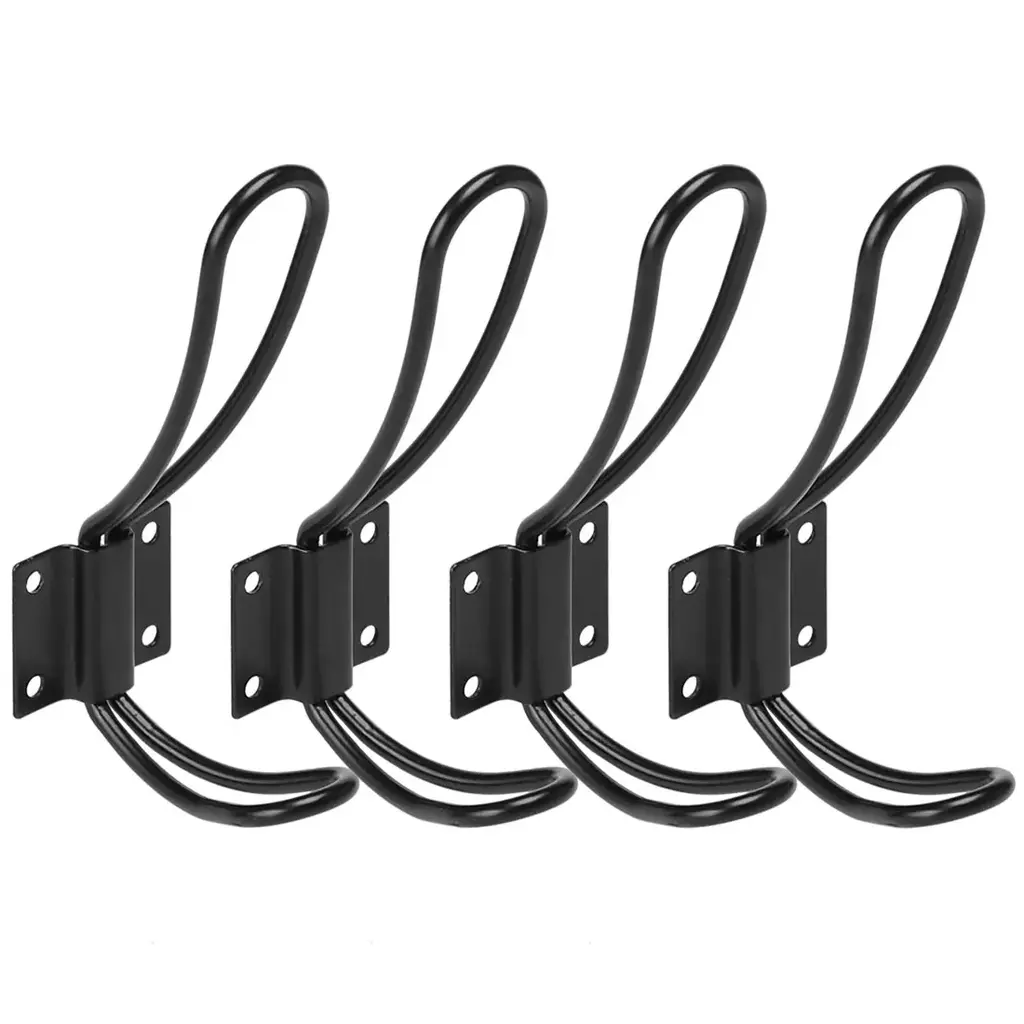 Dual Robe Hooks Iron Hook Coat Wall Bathroom Hanger W Screw Black 4Pcs - Black - 4Pcs