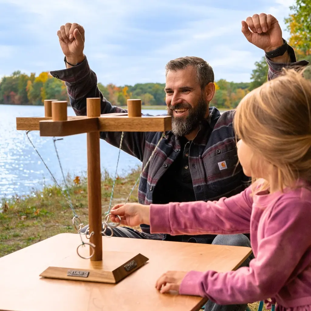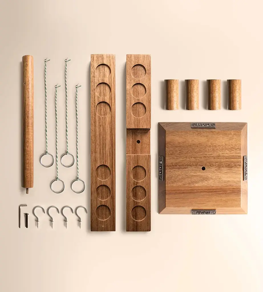 This fun travel version of hook and ring comes with a Full Lifetime Warranty. This four player version will be an amazing addition to your next event. Play with your best friends or family, and make memories for a lifetime. The entire set fits in a premium outdoor carry bag to take your fun on the go. Give as a gift, or play indoors, at the park, or in your back yard and turn your time into lasting memories with this fun game. Proud partners of the National Forest Foundation and 1% for the Planet, Elakai is dedicated to protecting the environment as well as investing in social experiences. Their games are handmade from carefully-selected premium materials. Processed in small batches to the highest standards, each piece is unique and durable. Enjoy the outdoors with Elakai.Note: When not in use, this product needs to be stored indoors.