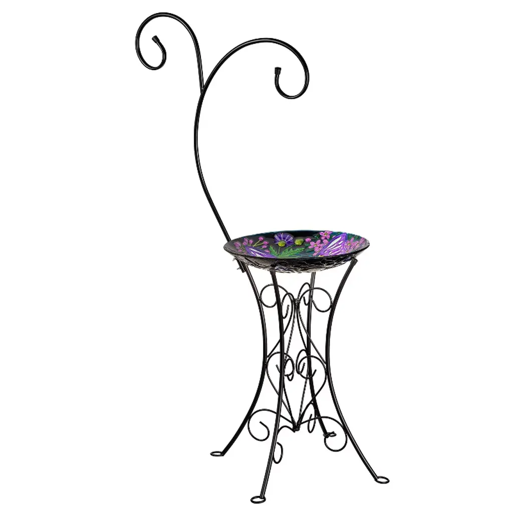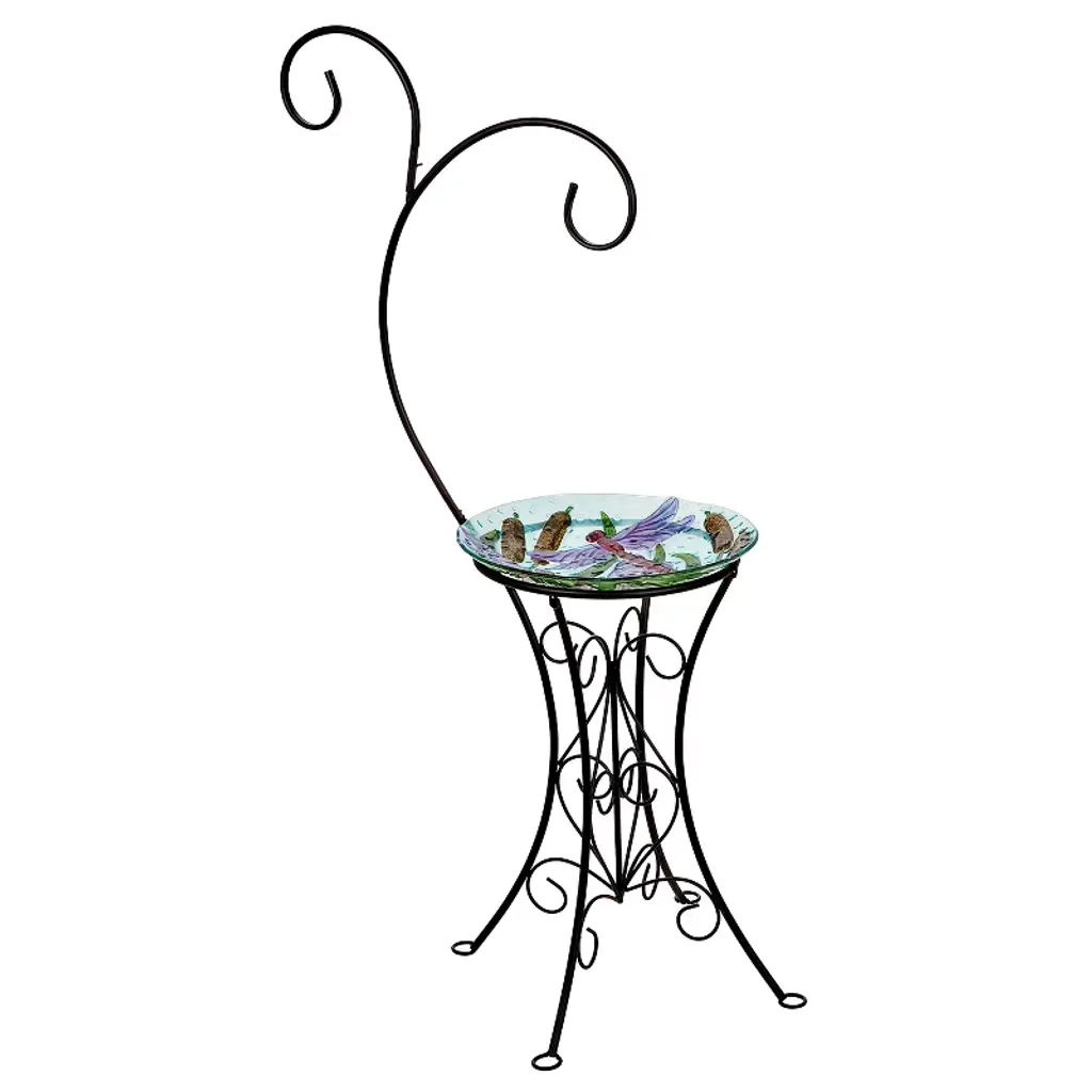 Evergreen Decorative Metal Bird Bath Stand, Dual Shepards Hook